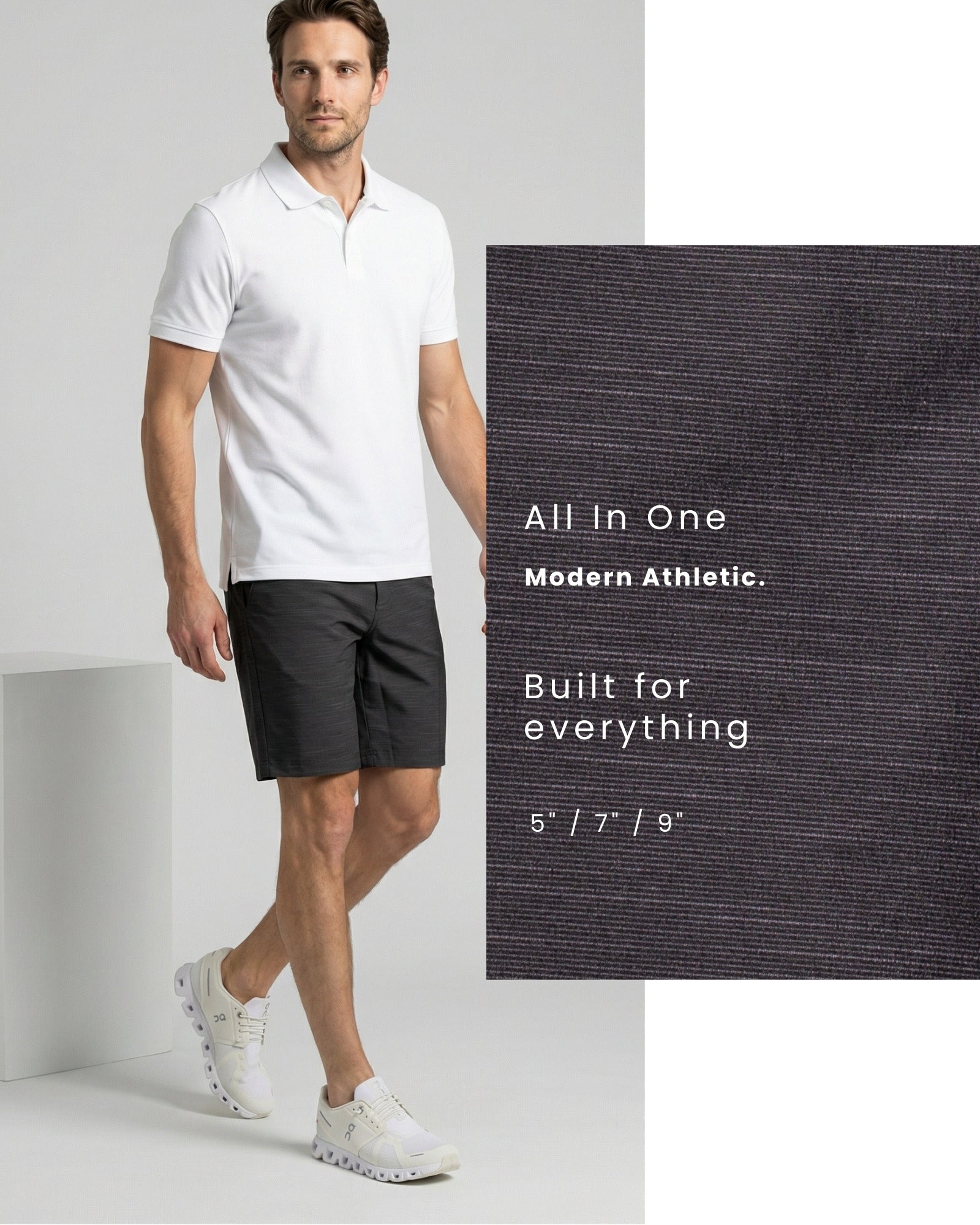 All In One Hybrid Short – 7”$ 59.00Grey Slub 18 Black Slub 18 Khaki Slub 18 Navy Slub 18