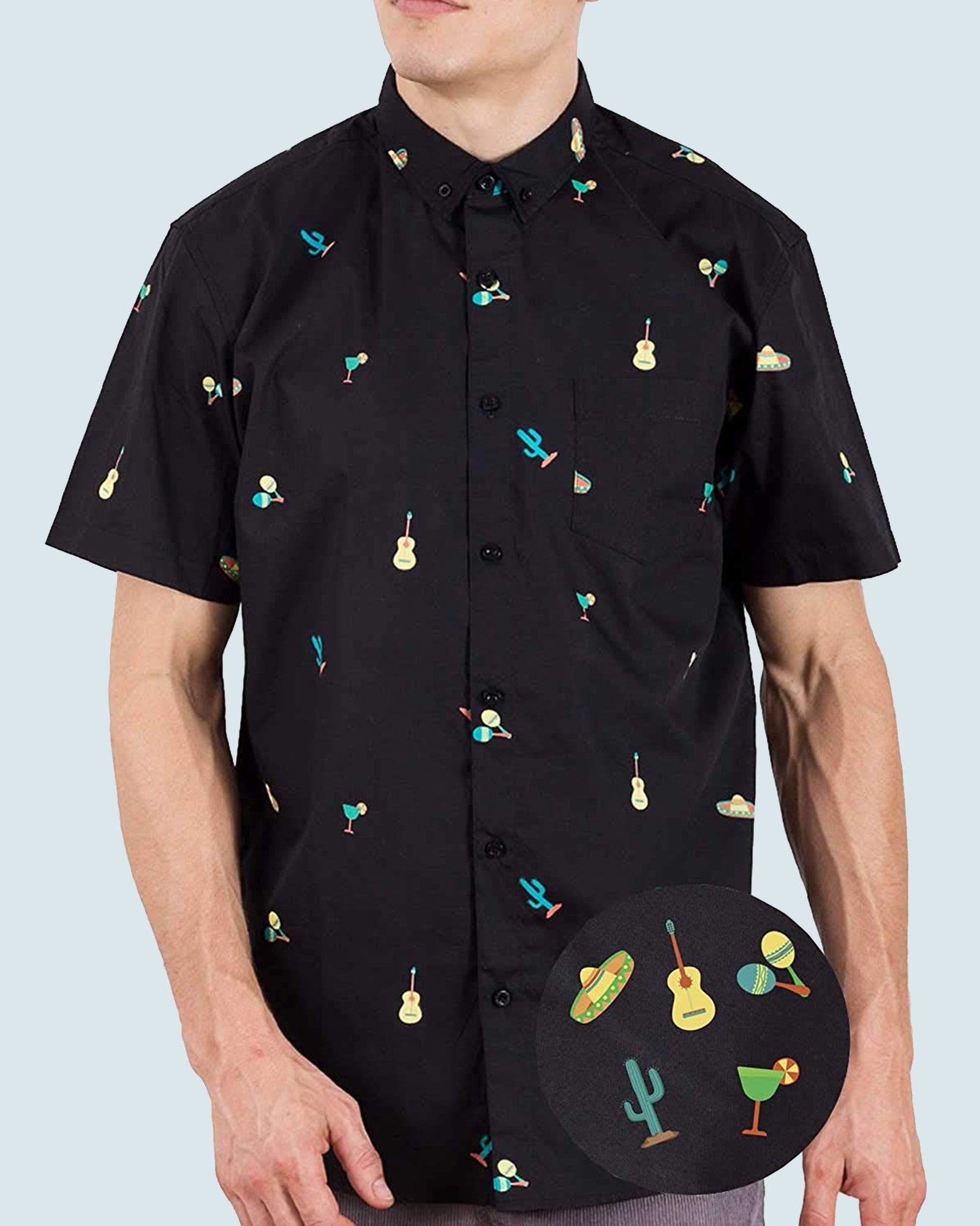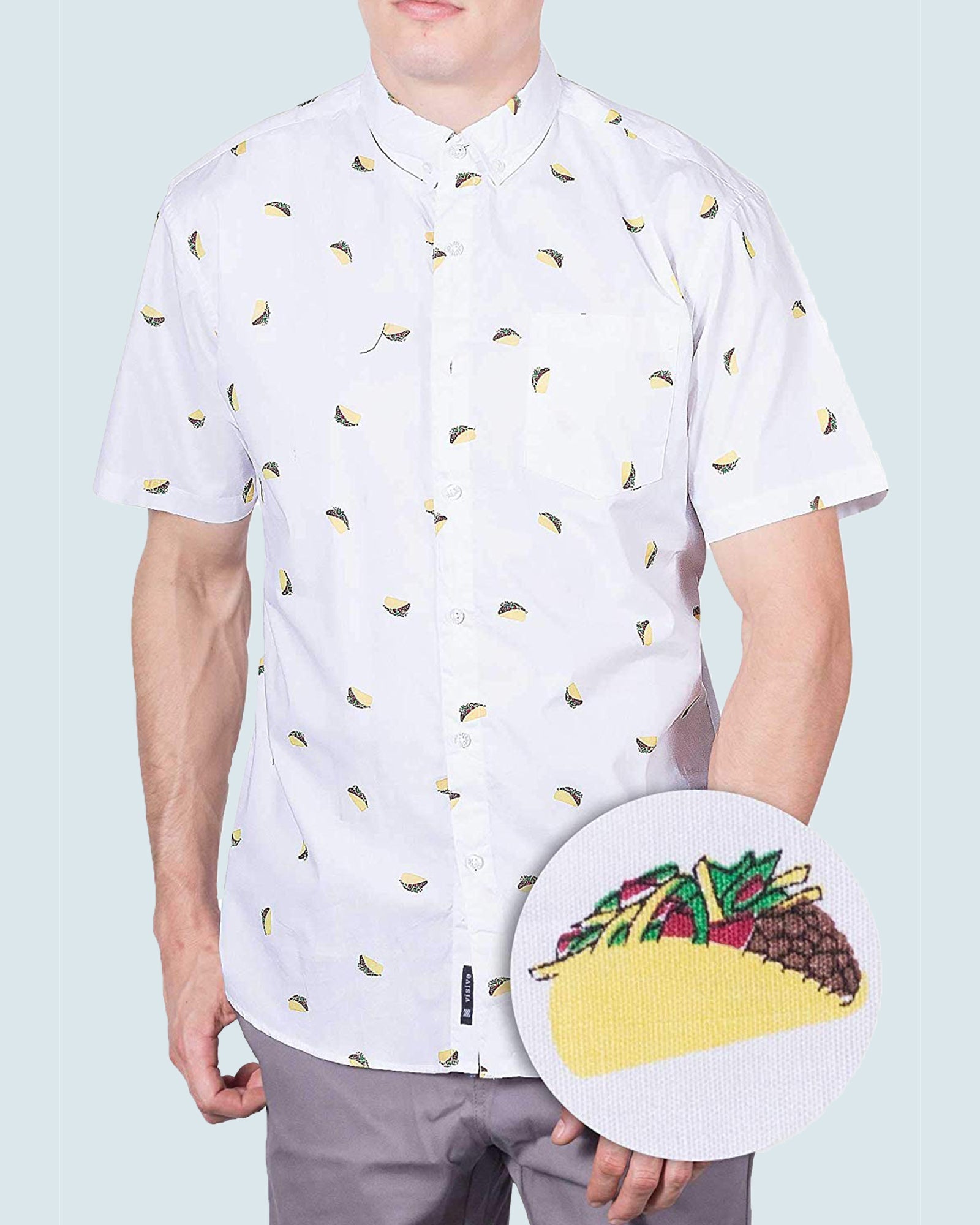 Mens Button Down Shirts - Fiesta/Tacos - Fiesta Beige (Stretch) - visive