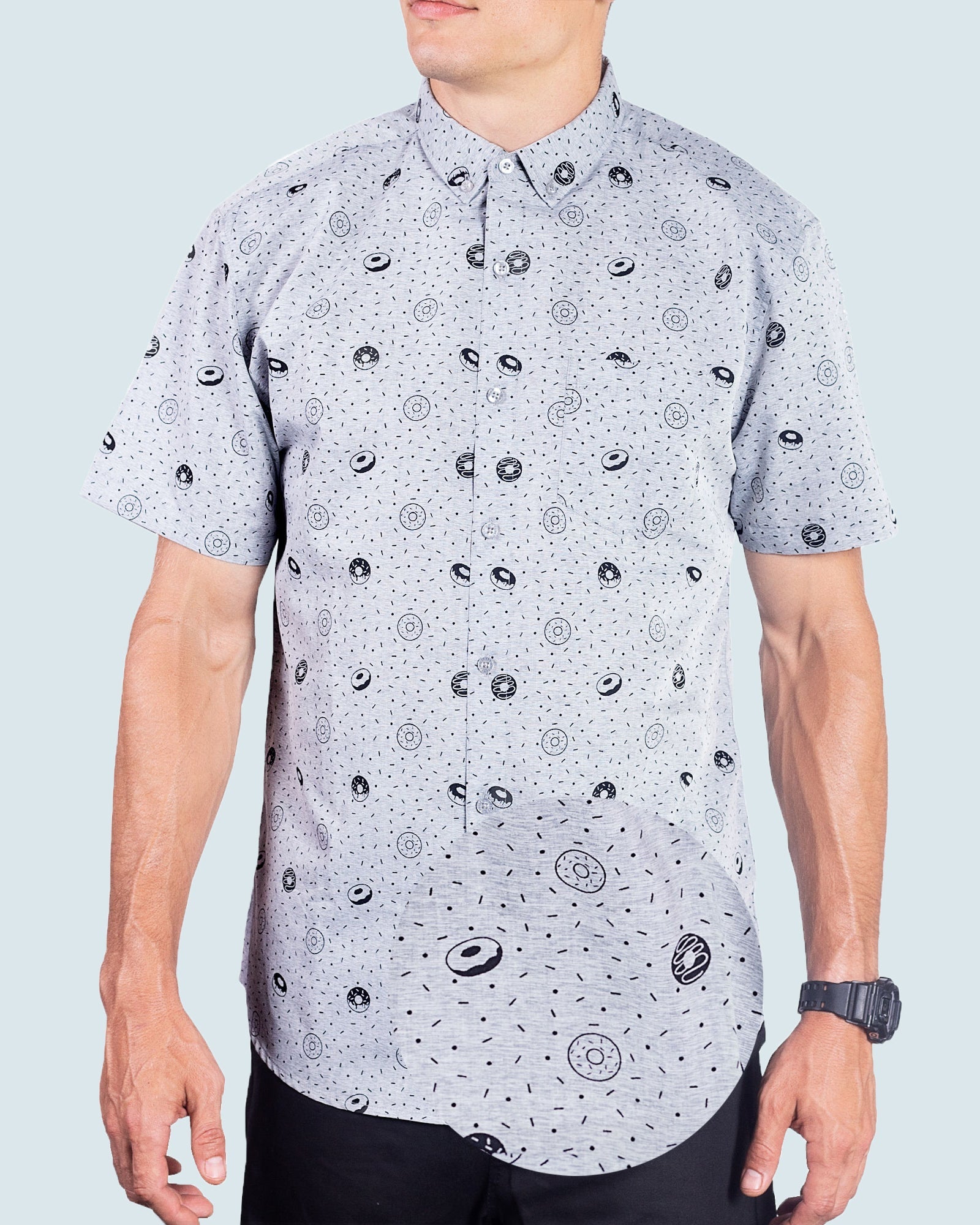 Mens Button Down Shirts - Food Prints (Donut Sprinkle - Grey)