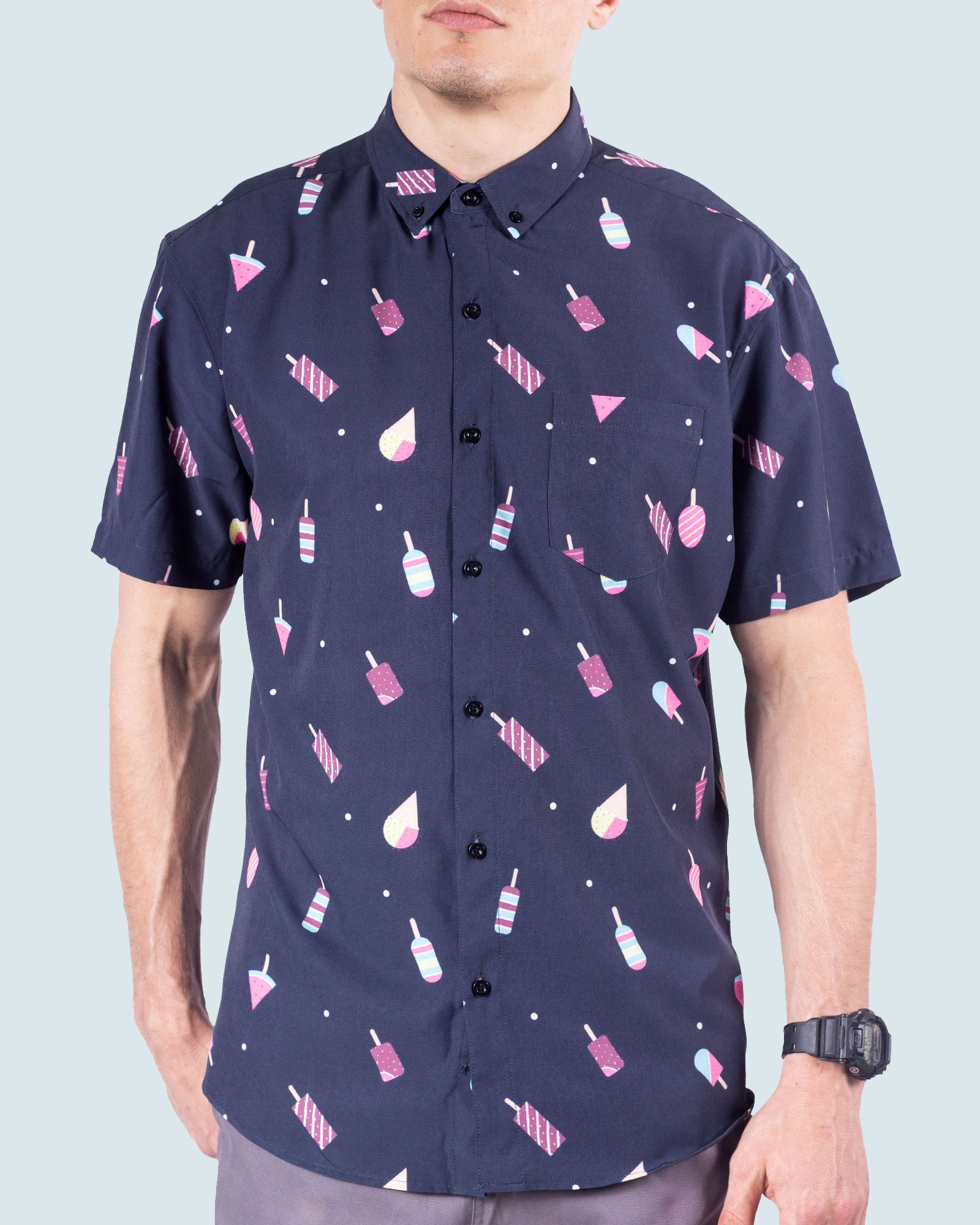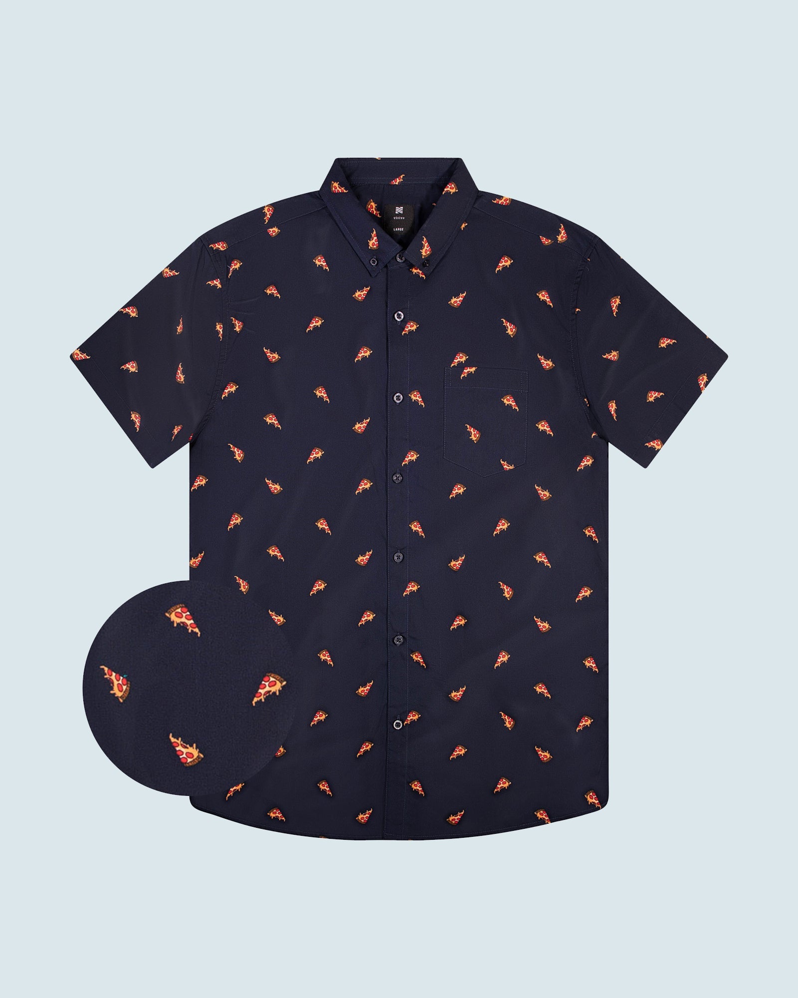 Mens Button Down Shirts - Food Prints (Pizza Navy)