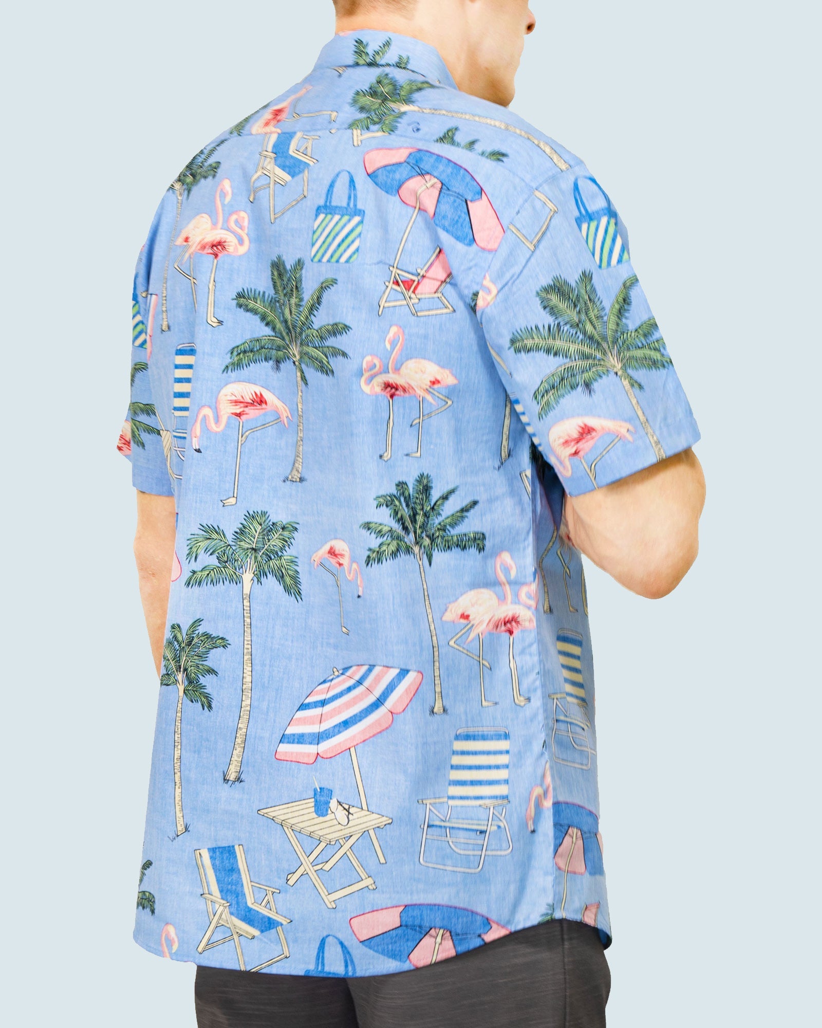 Mens Button Down Shirts - Hawaiin Prints (Beach Chair)