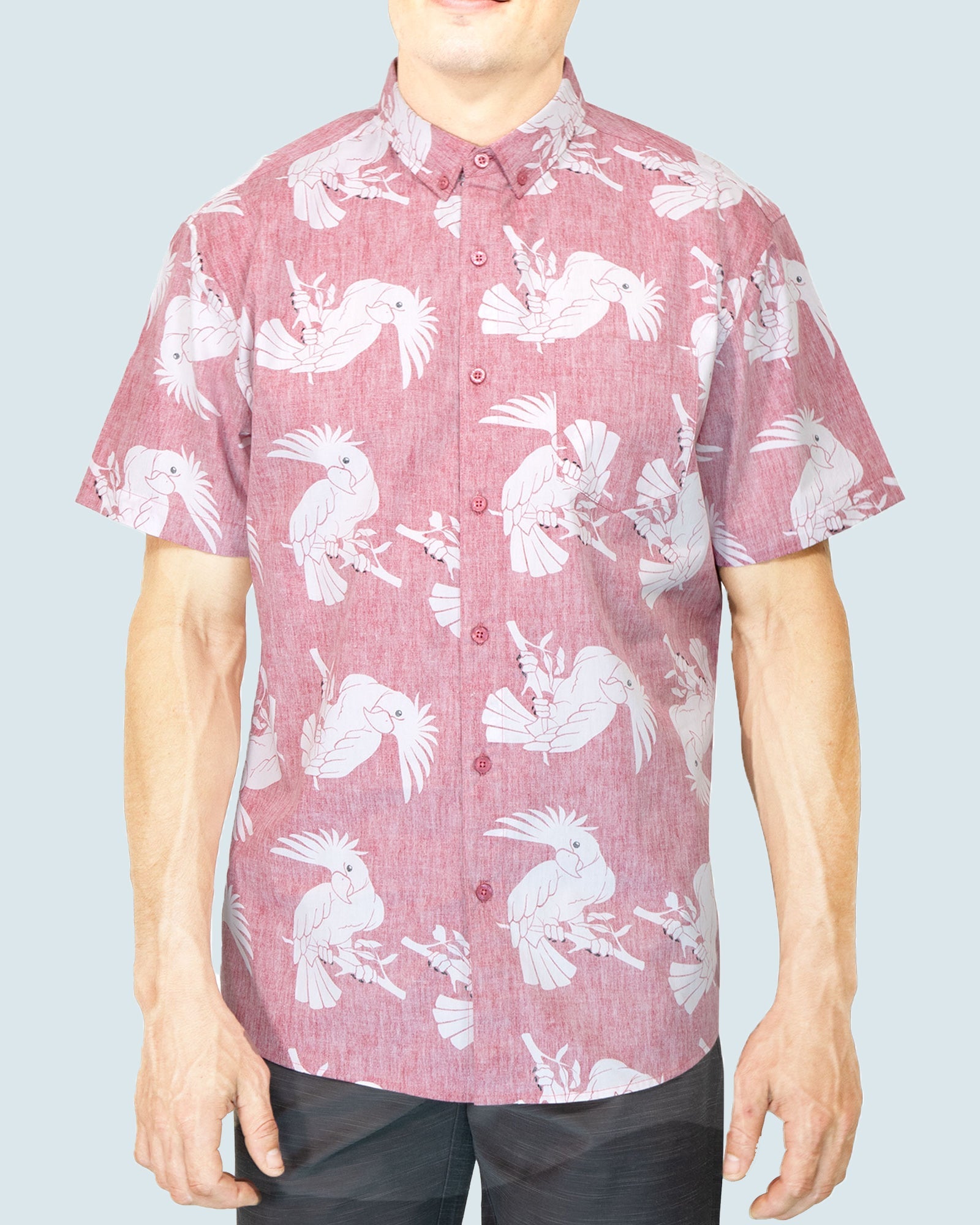 Mens Button Down Shirts - Hawaiin Prints (Pink Hawaiian) - visive