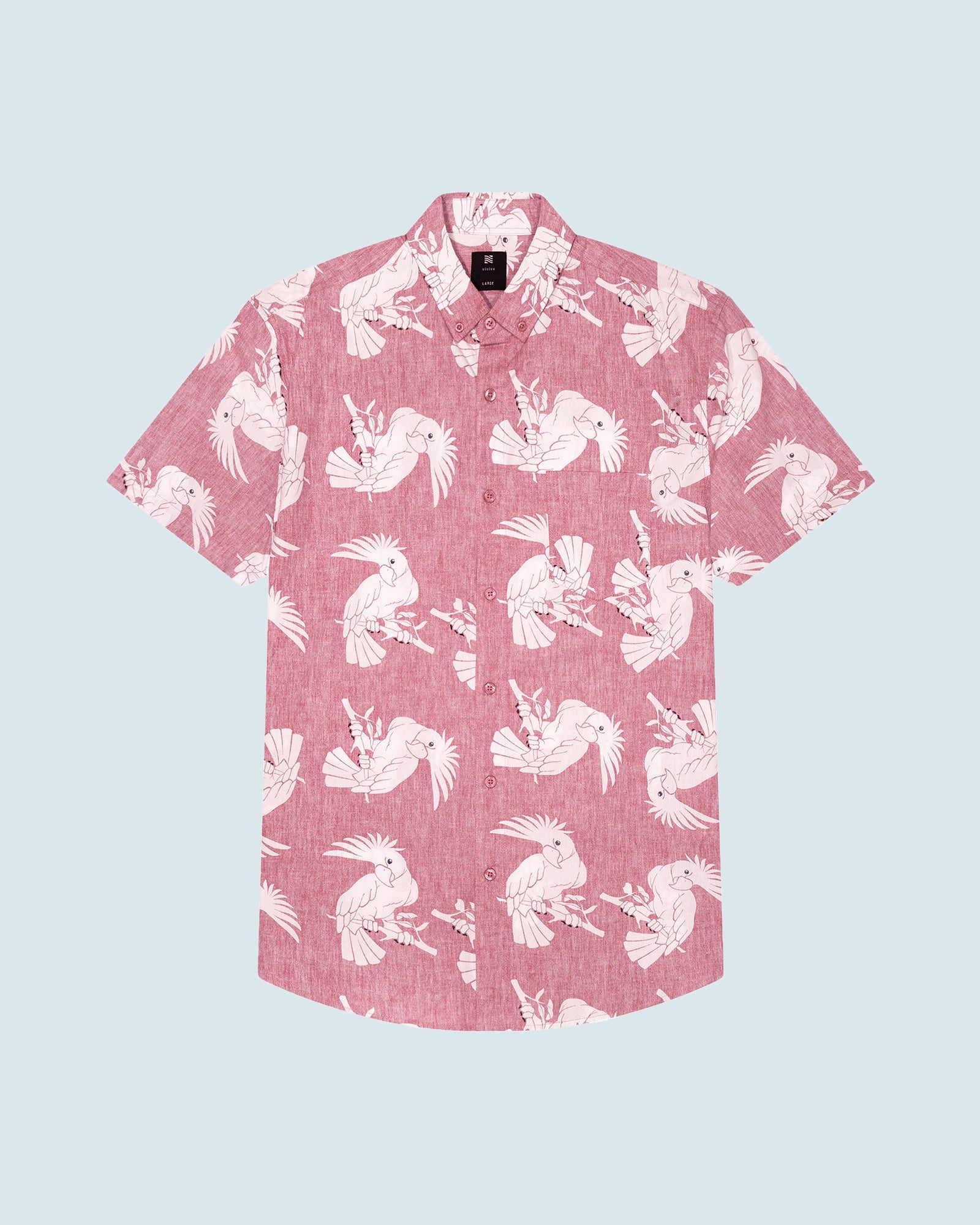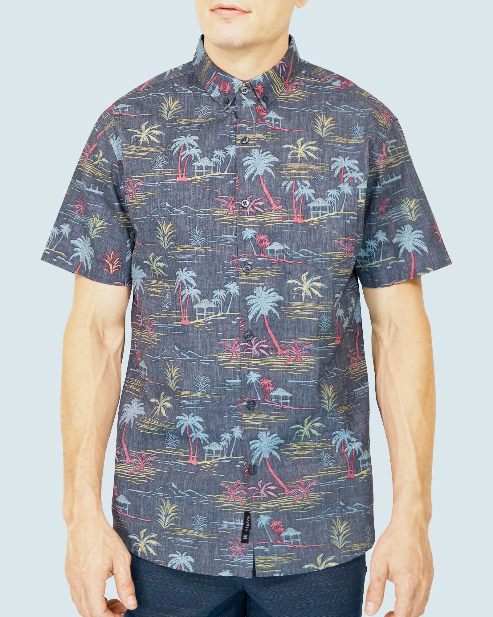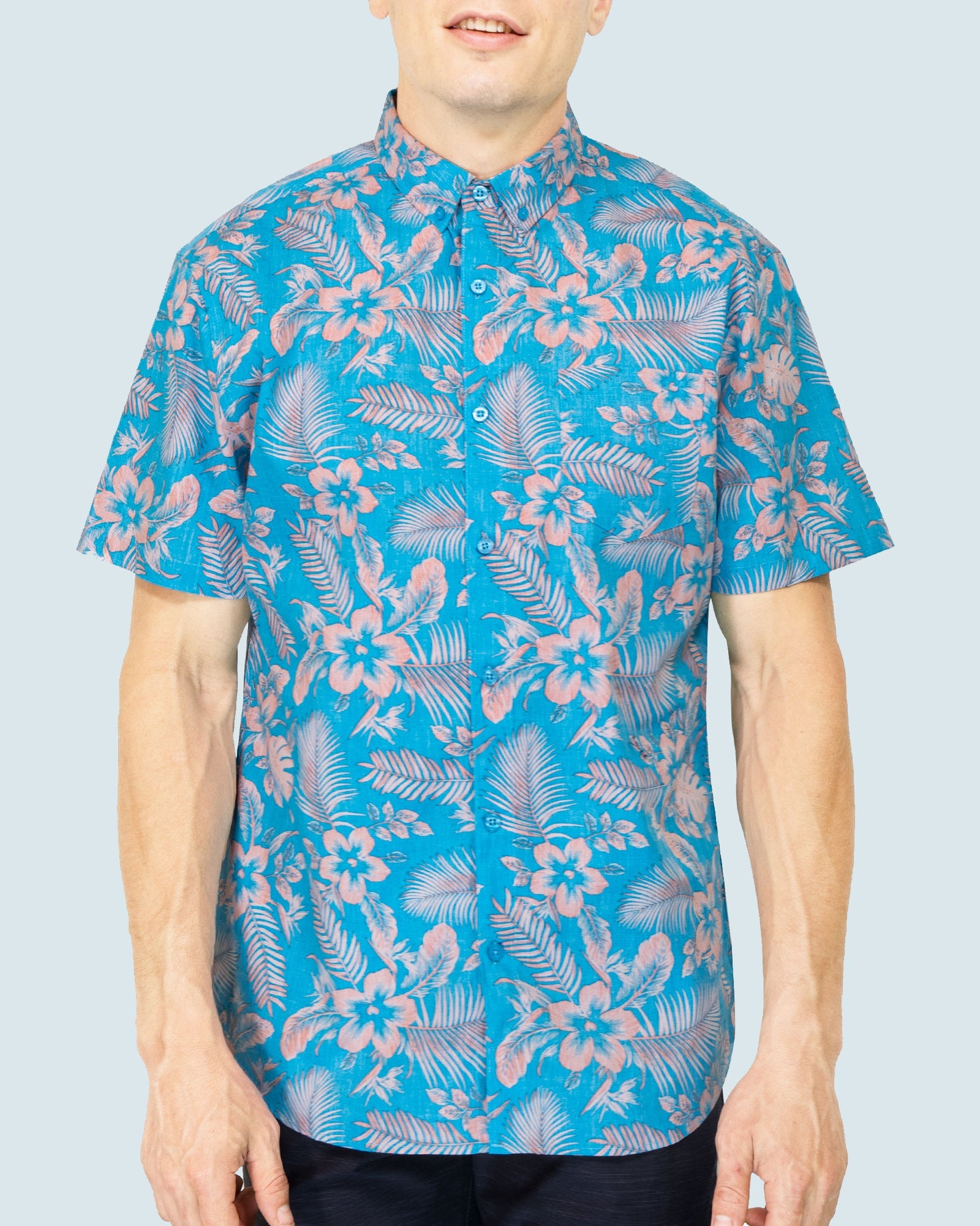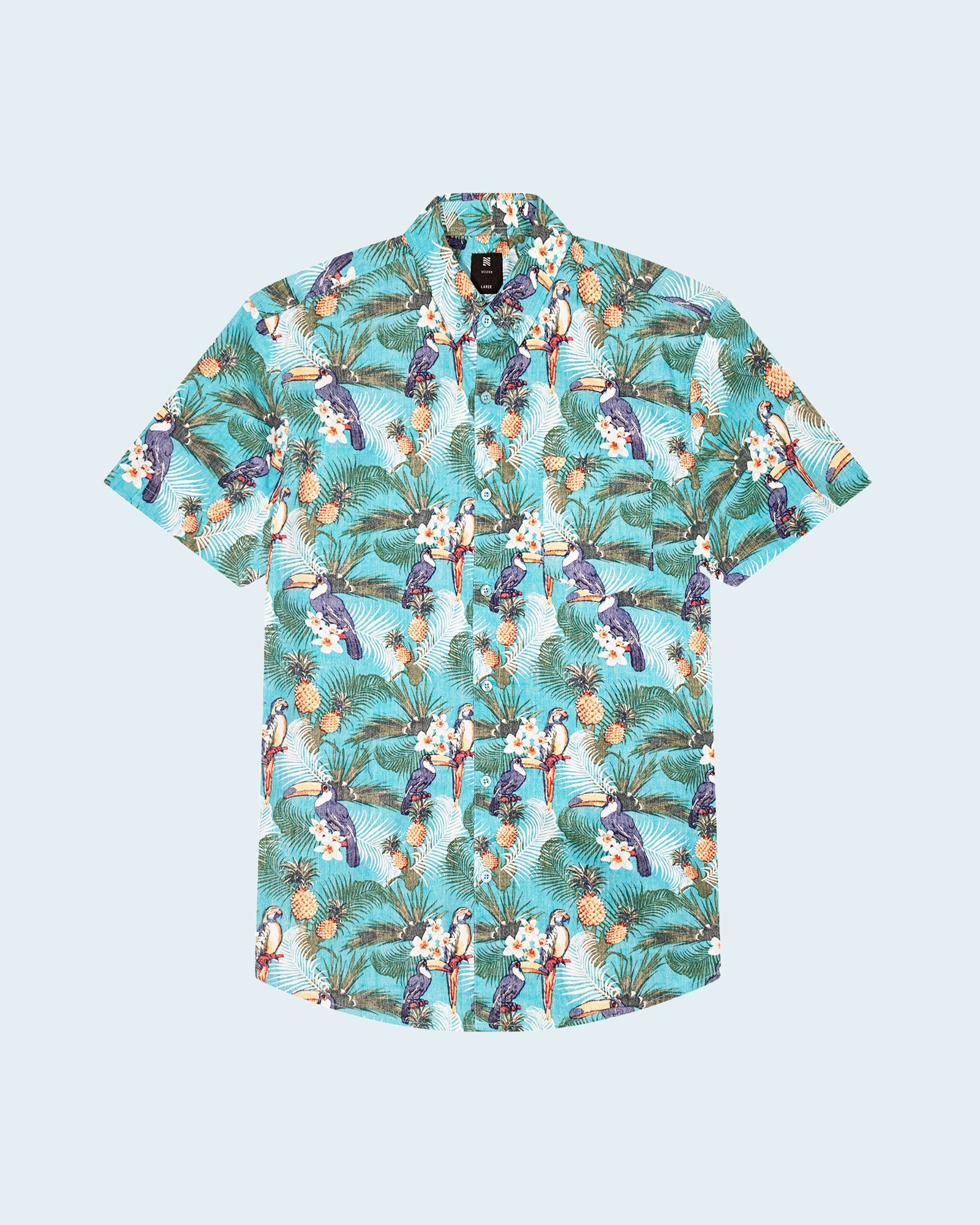 Mens Button Down Shirts - Hawaiin Prints (Rev Parrot Pineapples)