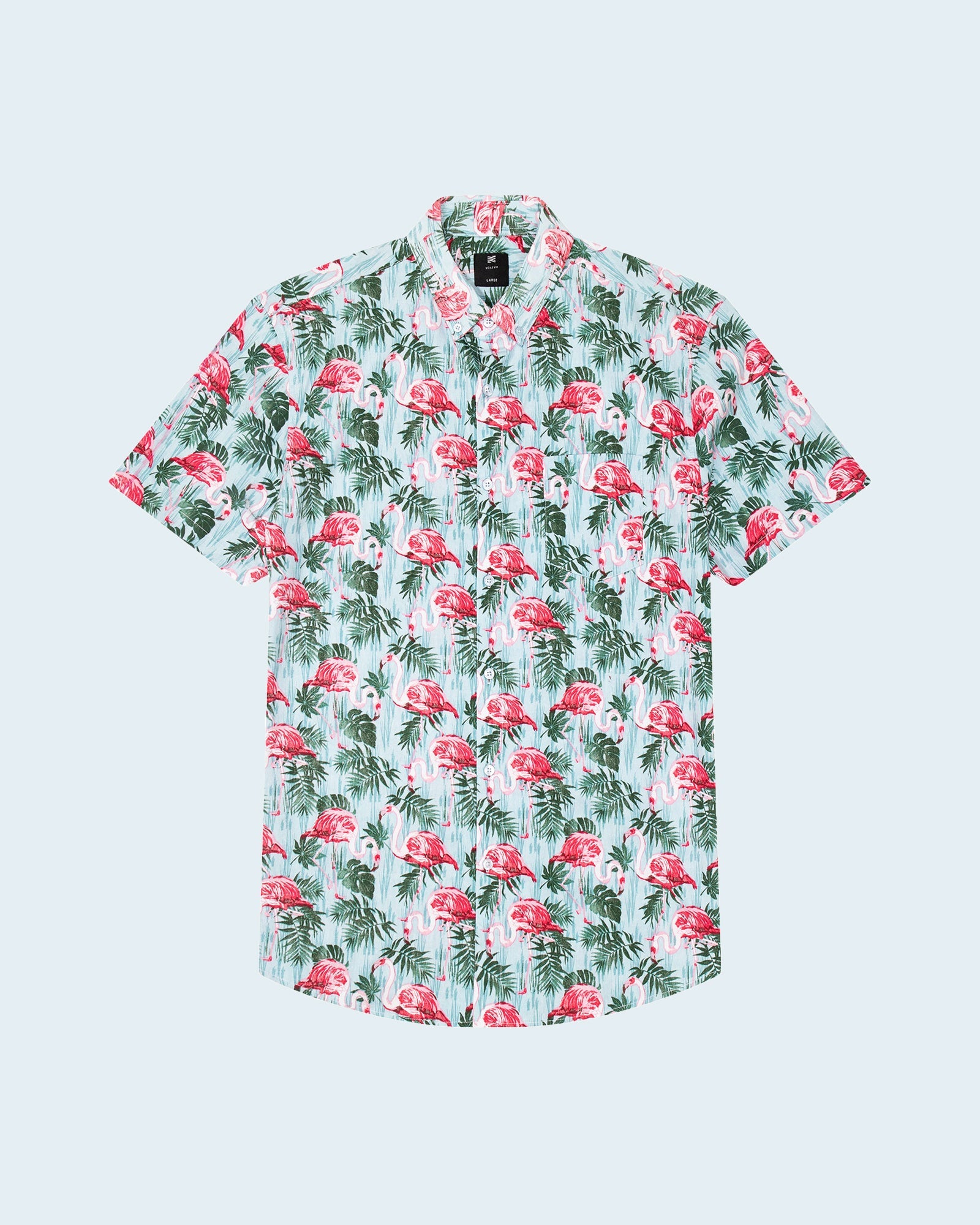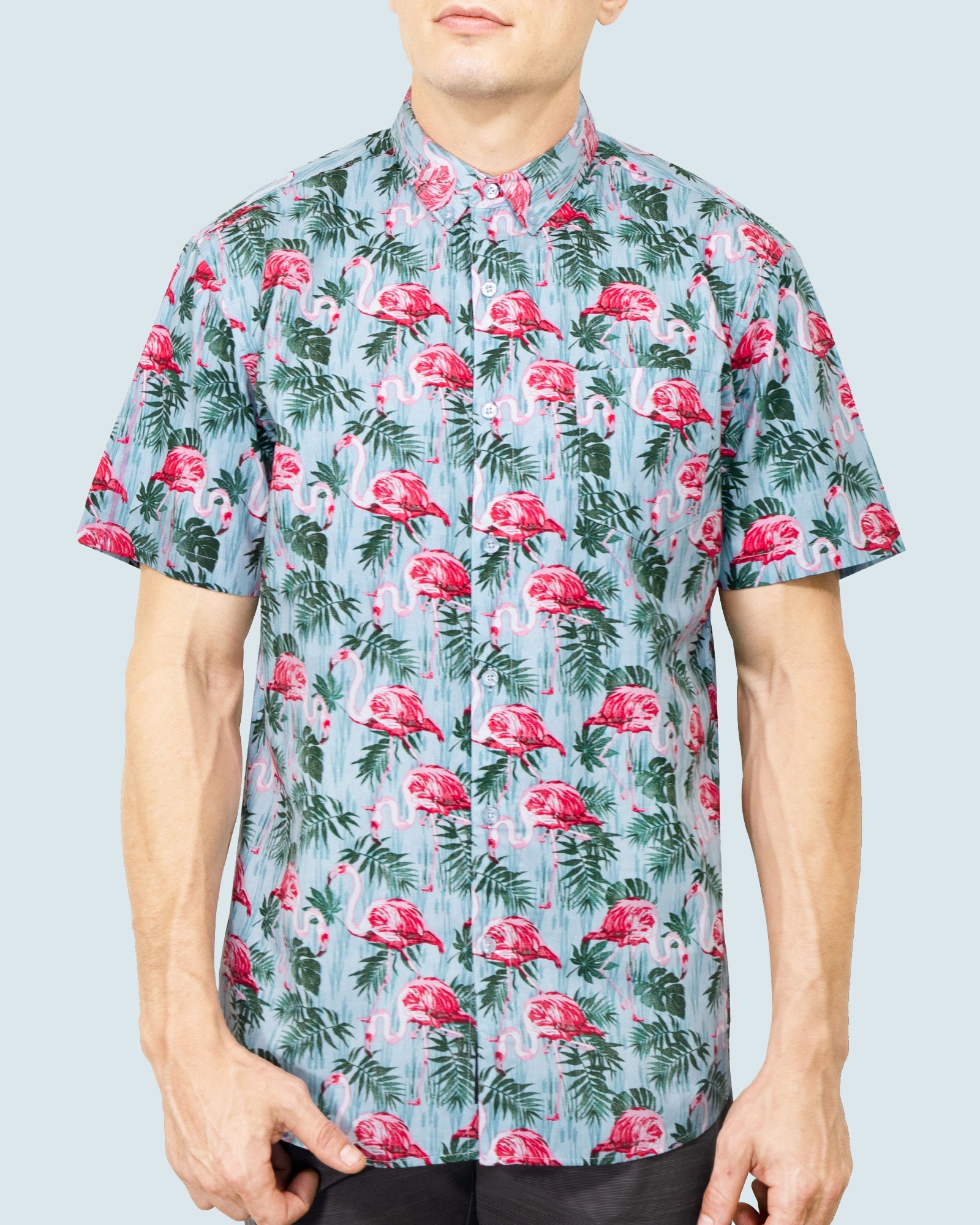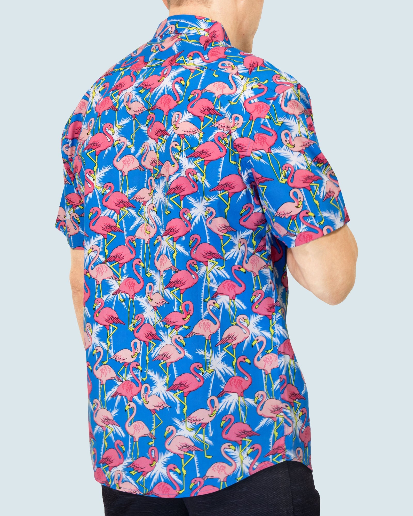 Mens Button Down Shirts - Novelty Prints (Flamingo Palm - Pink)