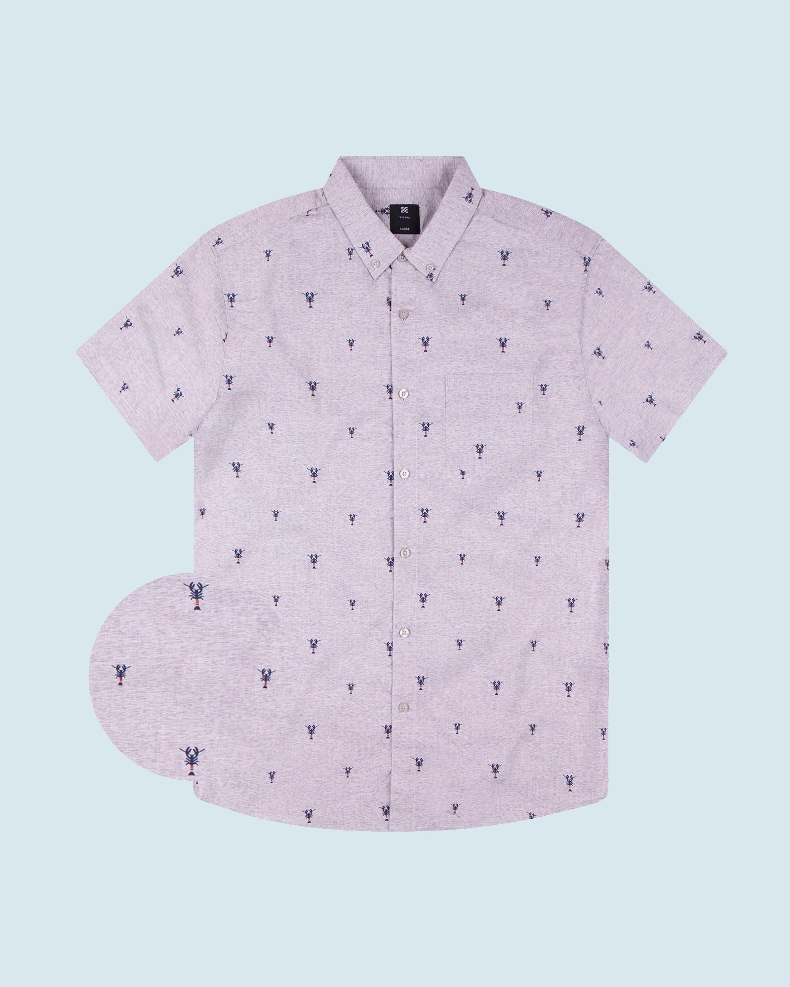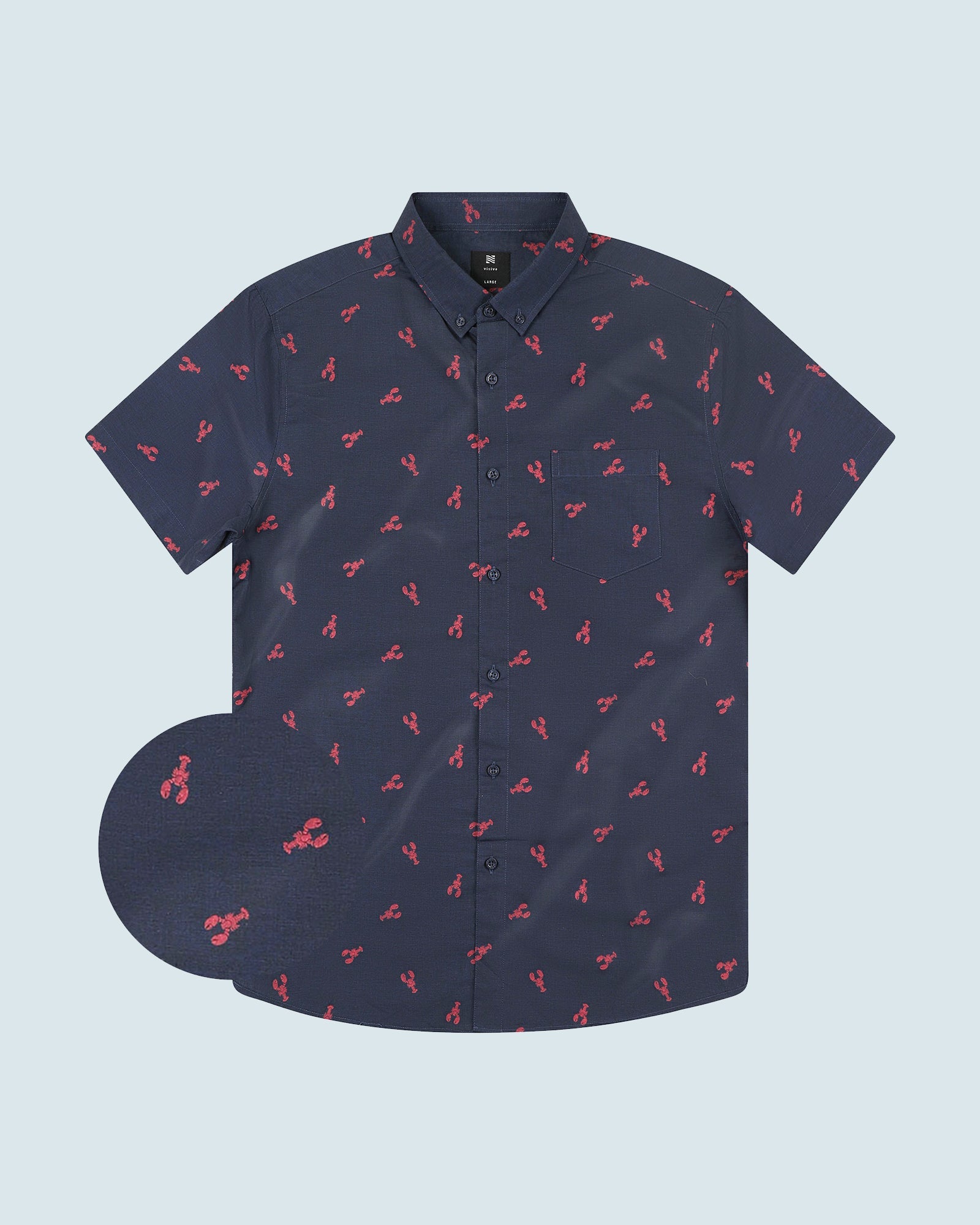 Mens Button Down Shirts - Sea Animal Prints (Shrimp - Navy)