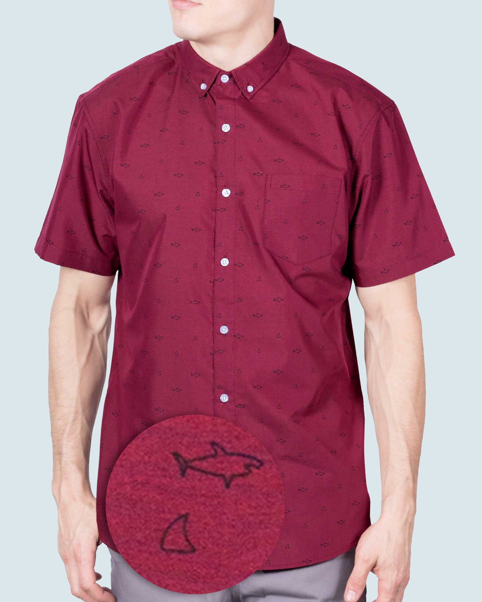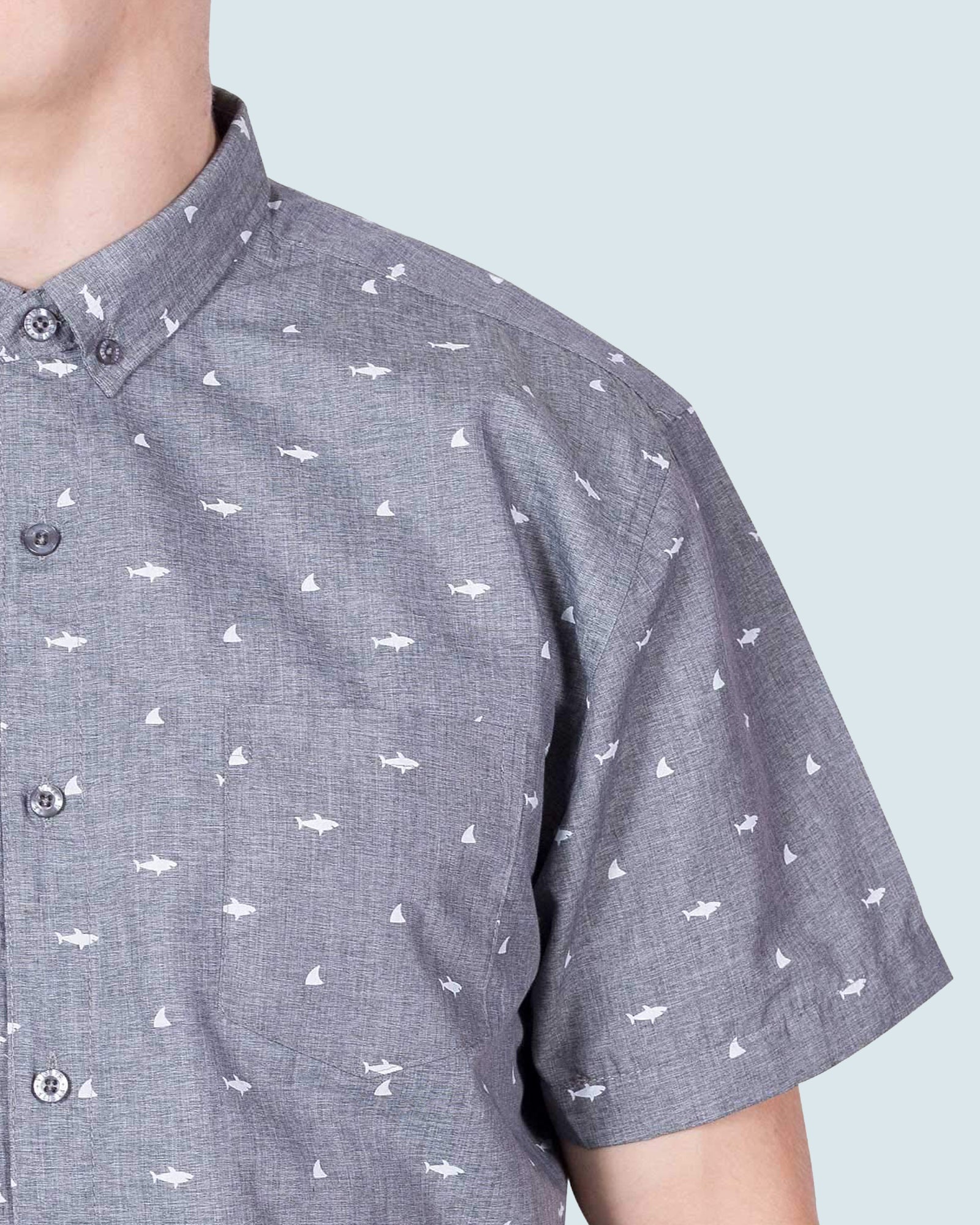 Mens Button Down Shirts - Shark Prints (Full Shark - Black)