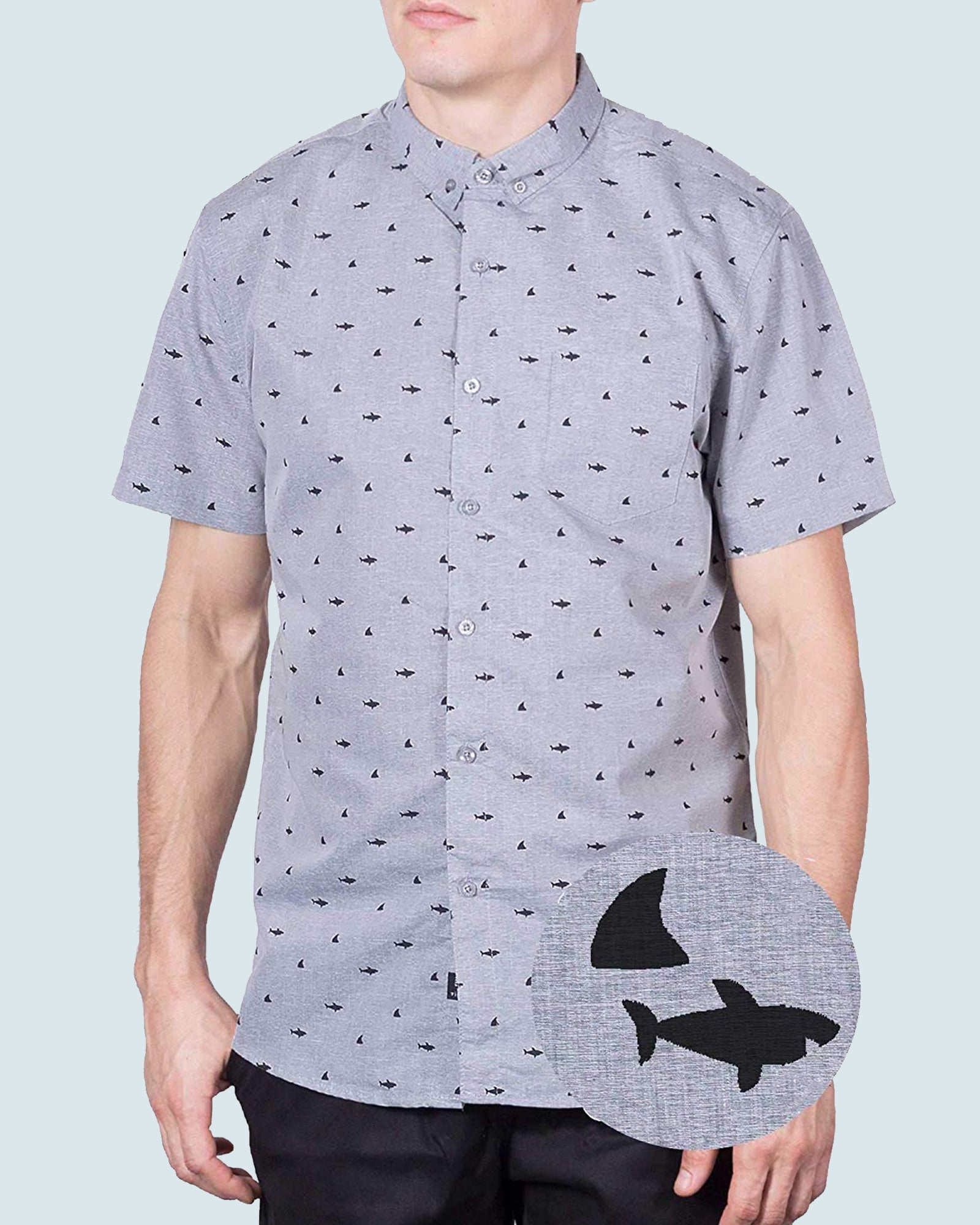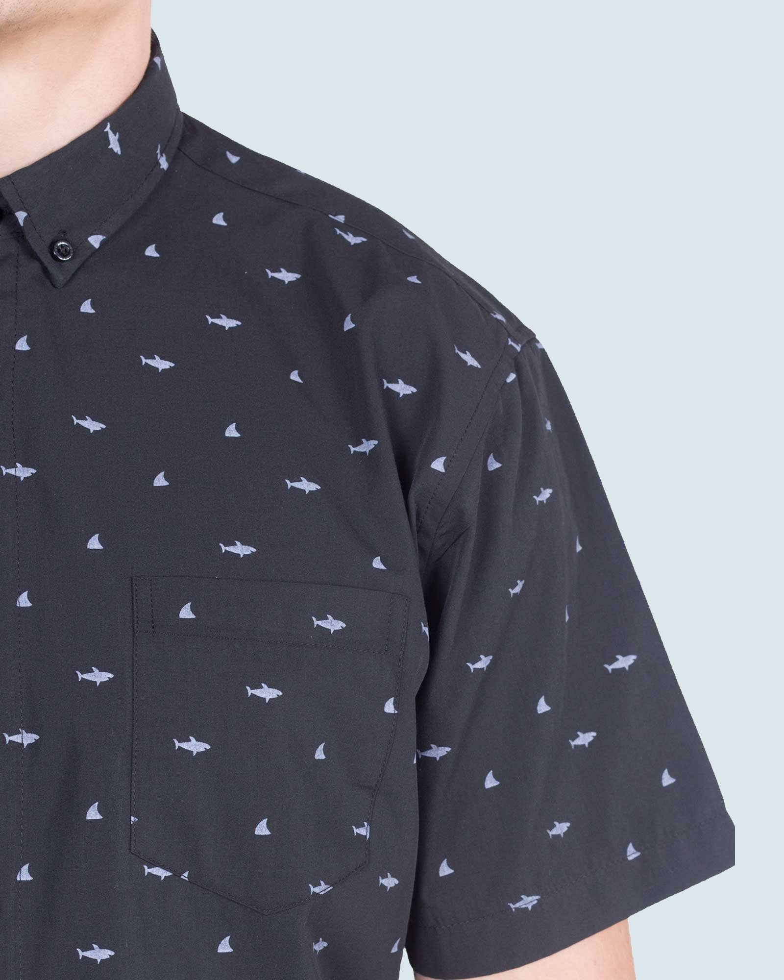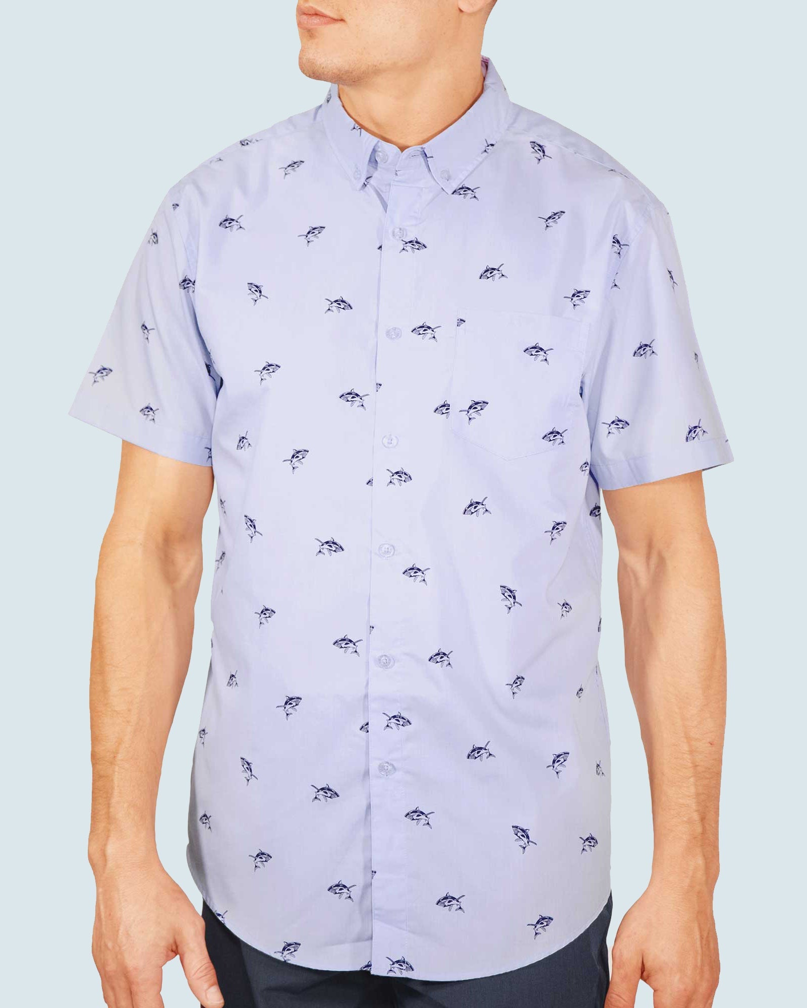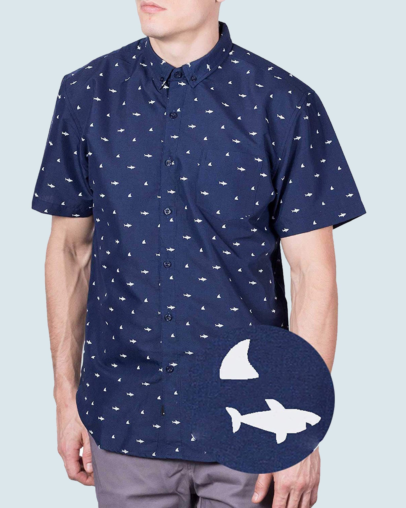 Mens Button Down Shirts - Shark Prints (Full Shark - Blue)