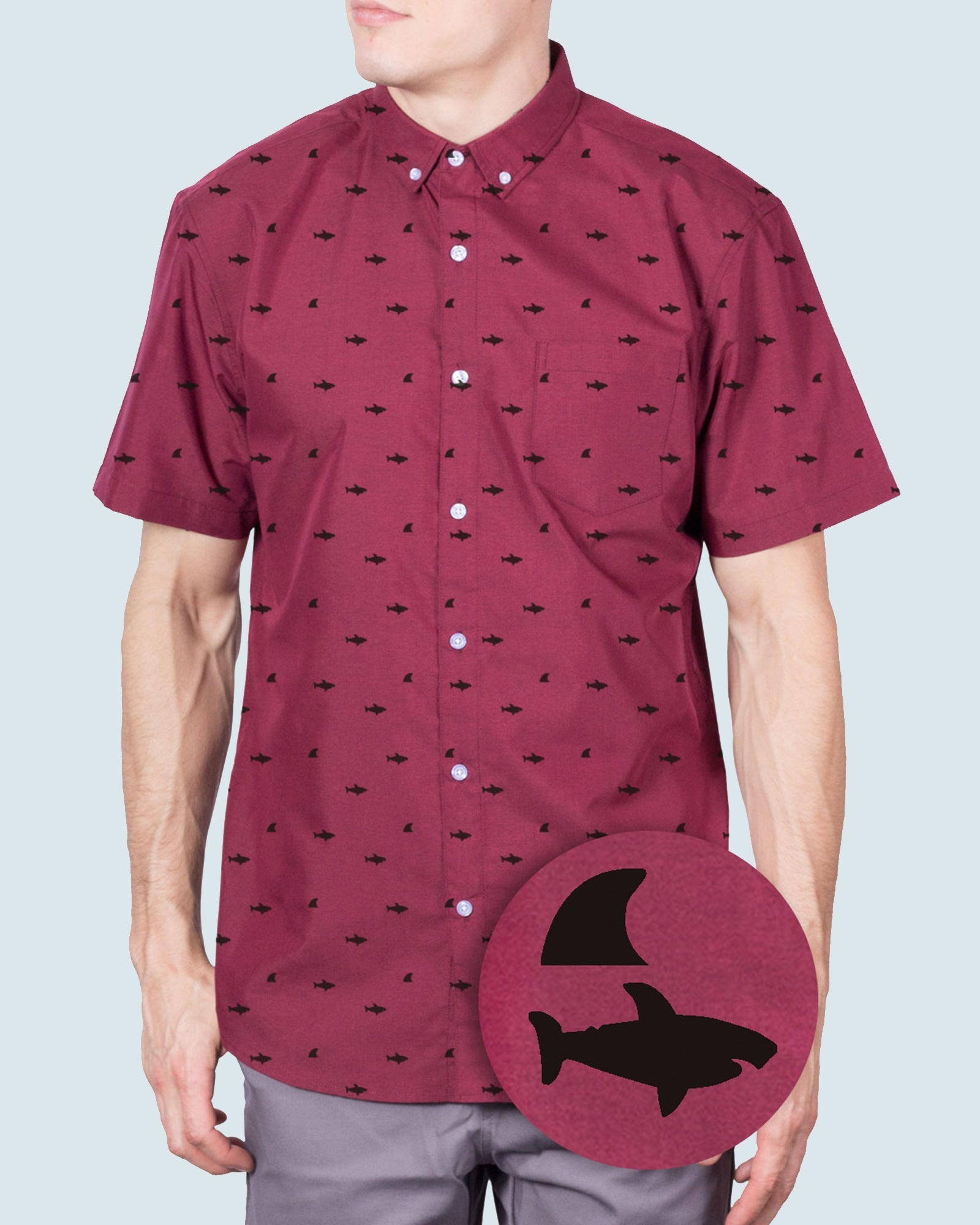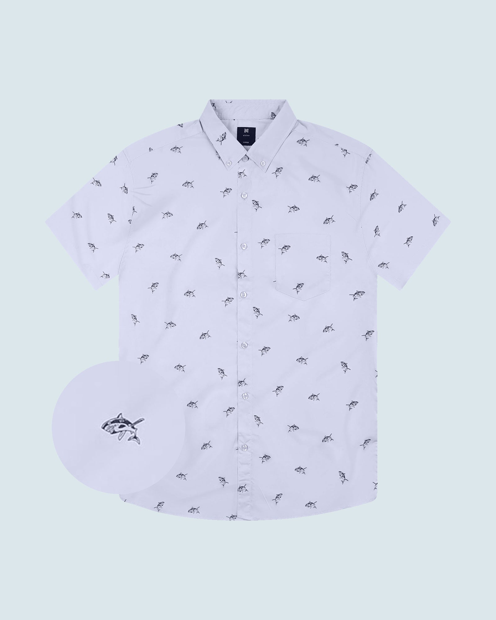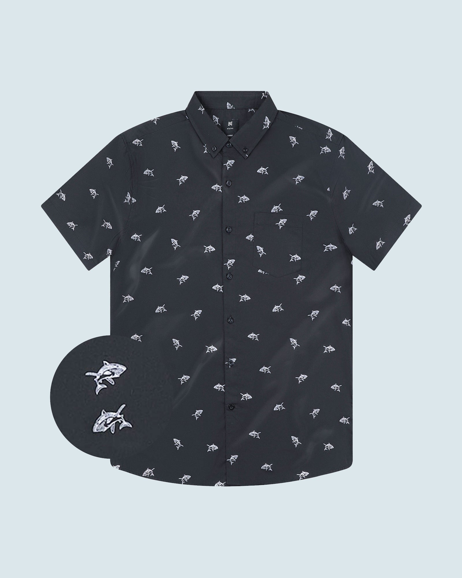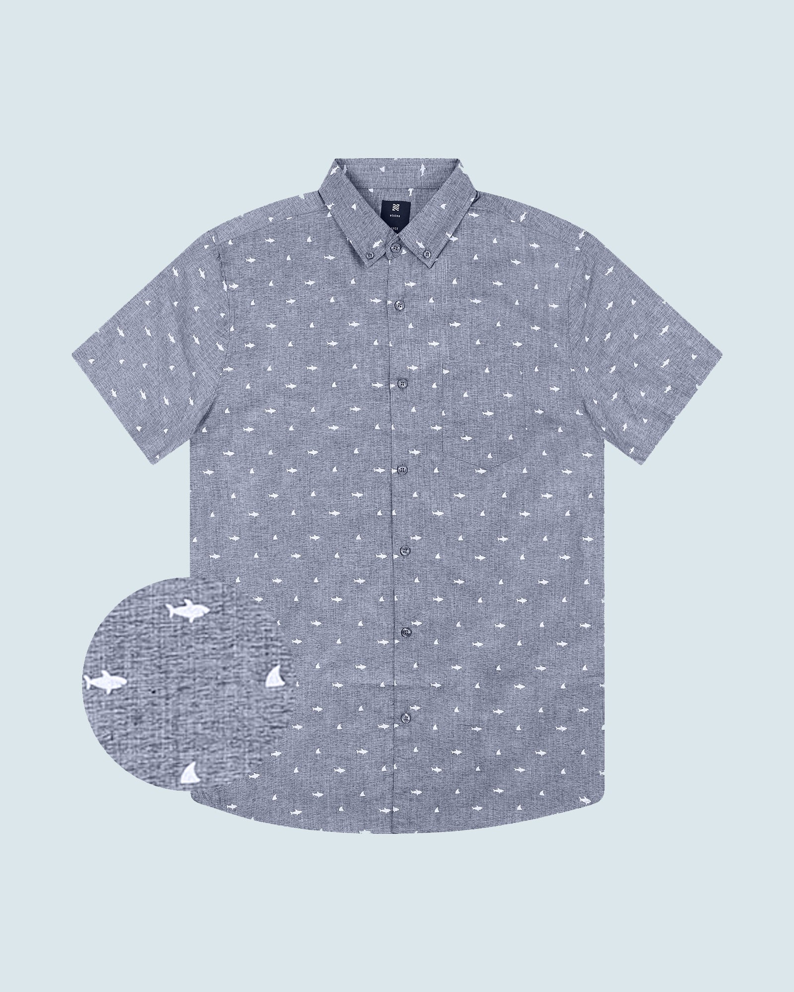 Mens Button Down Shirts - Shark Prints (Full Shark - Blue)
