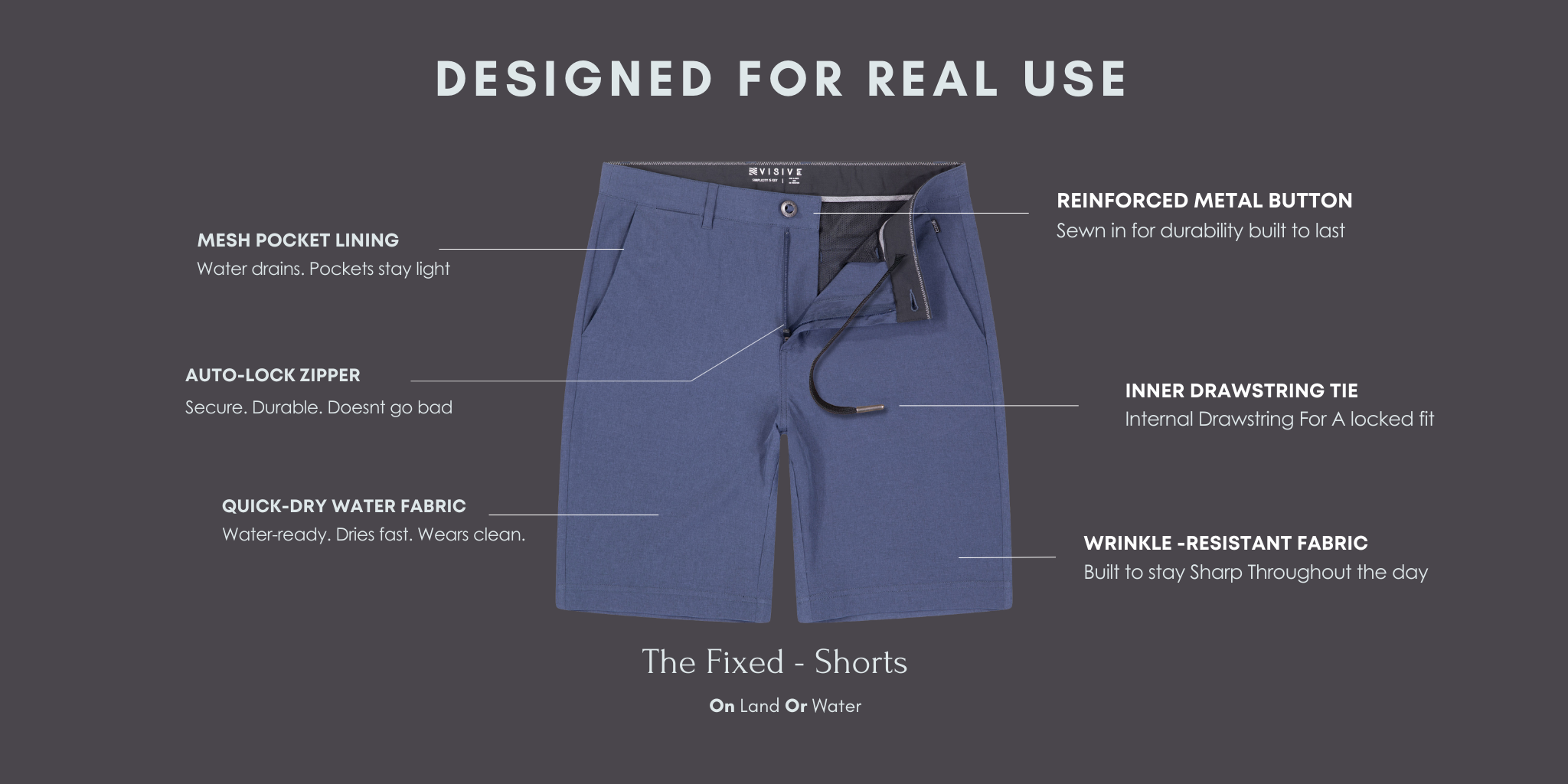 The Fixed Hybrid Short is Visive’s cleanest, most minimal design. Built for daily wear, travel, and casual settings with timeless appeal.