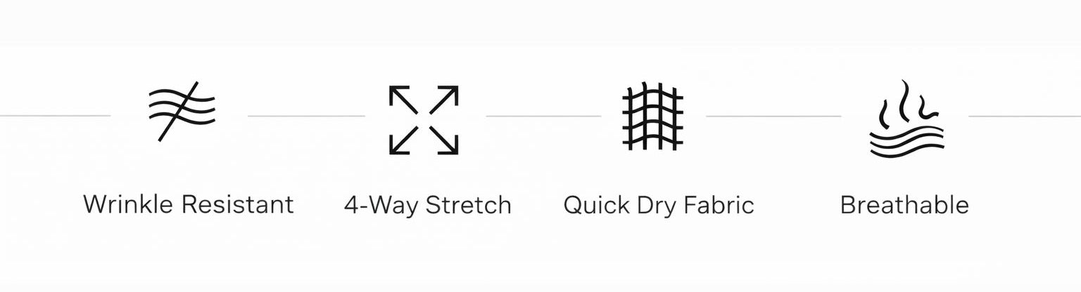 Smooth, quick-dry stretch fabric with lightweight comfort and clean structure.