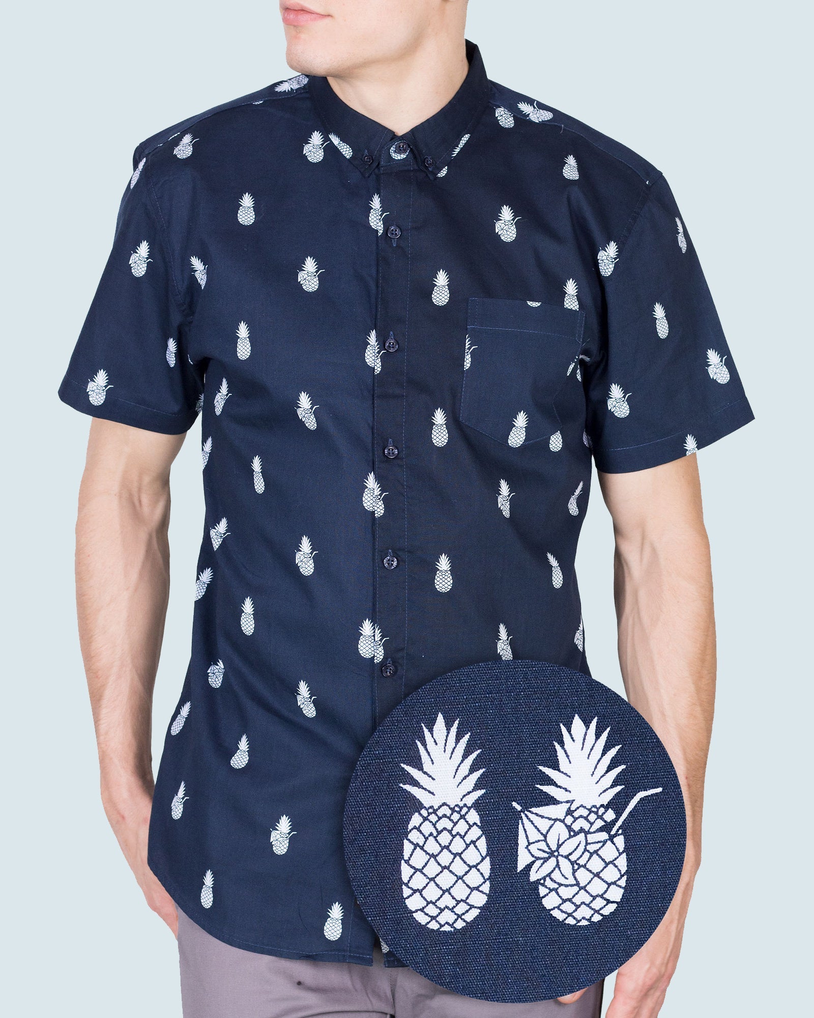 Mens Button Down Shirts - Fruit Prints (Strawberry Black)