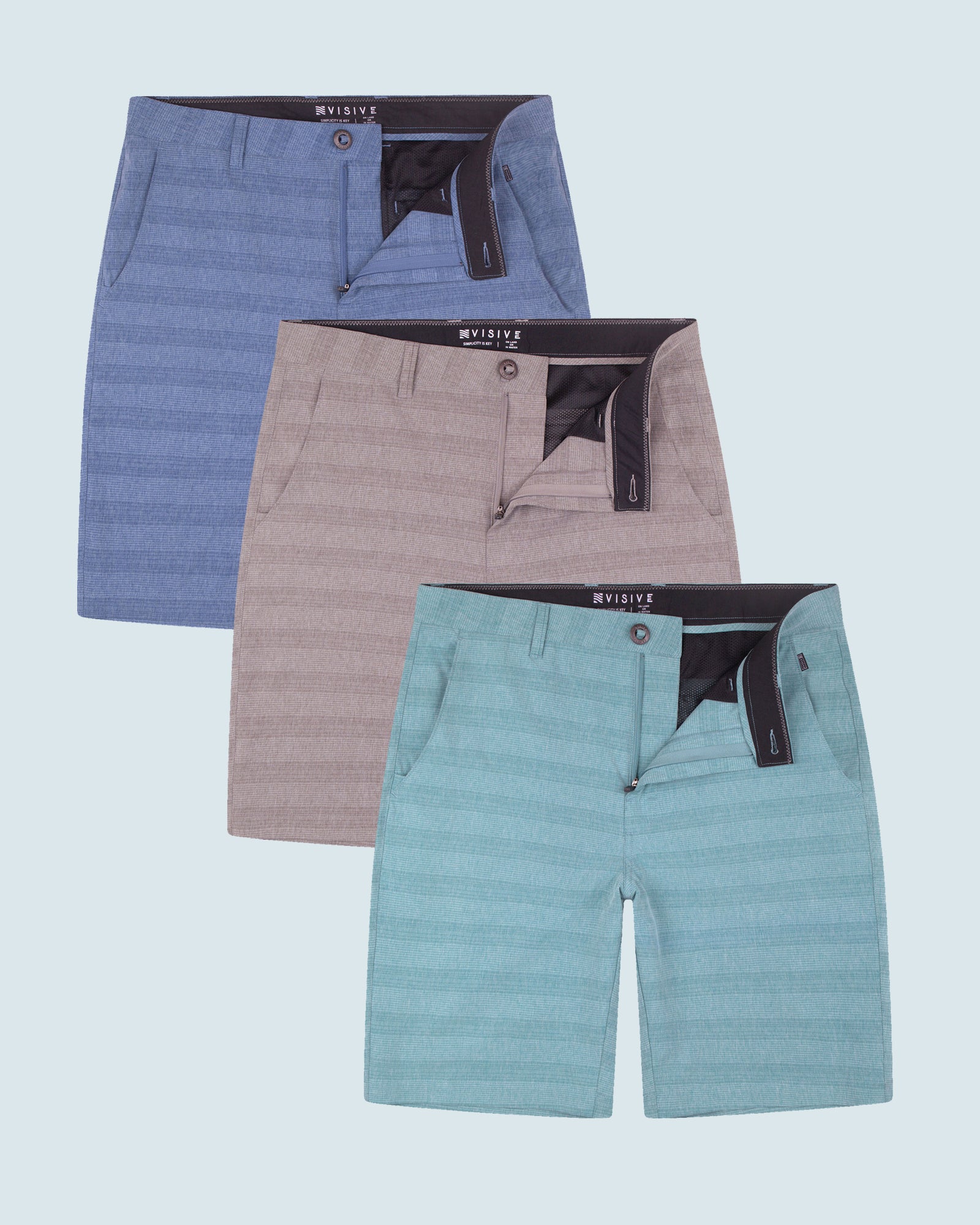 Durable and easy to care for, the Visive hybrid shorts are machine washable and designed to maintain their shape and quality through regular wear. Lightweight and breathable, they provide comfort all day long. The Alternative Men's Hybrid Shorts - Stripe Grey by Visive are a must-have for anyone looking for a blend of style and practicality.