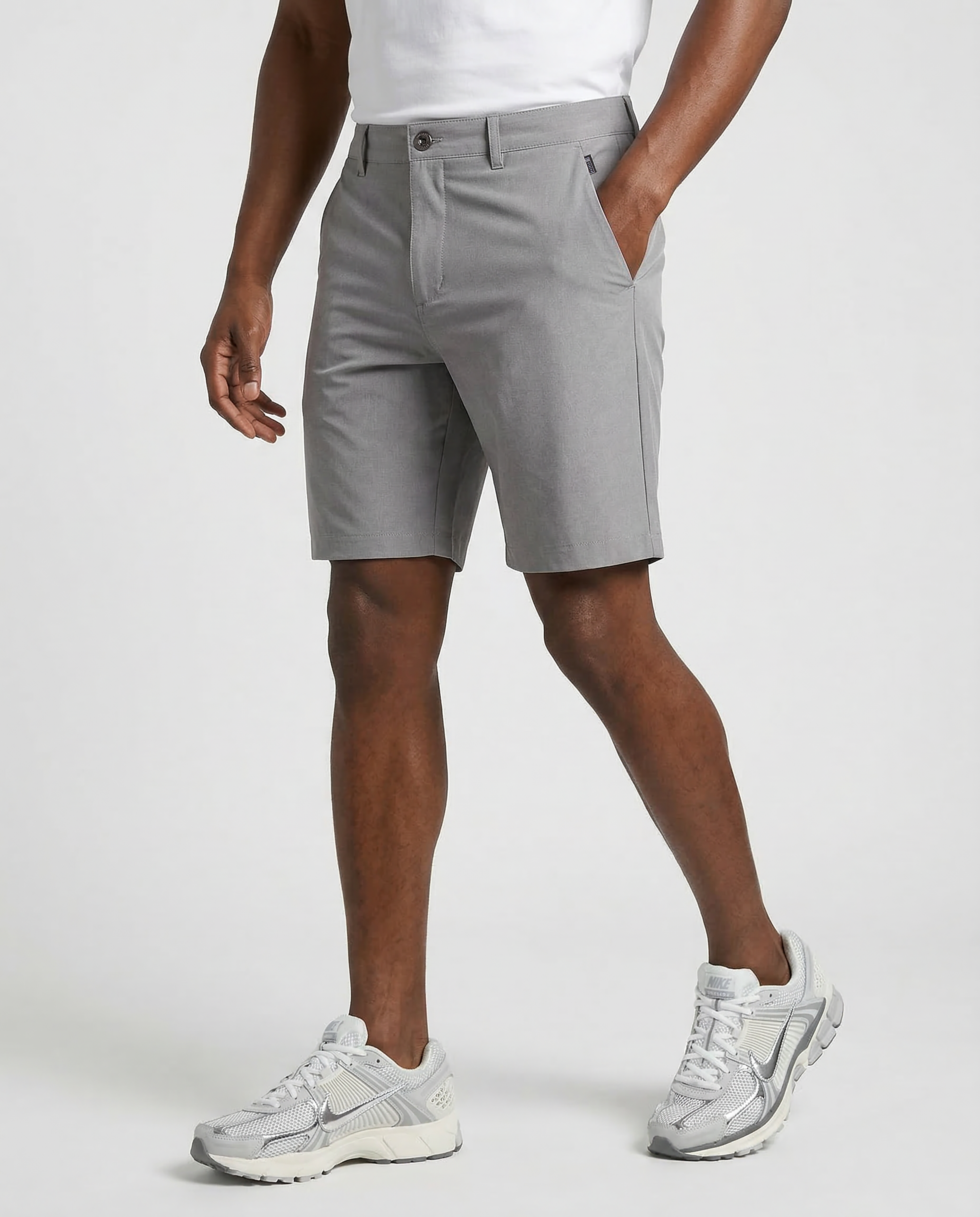 Sits comfortably above the knee with a clean, moden look that works from golf to casual wear.