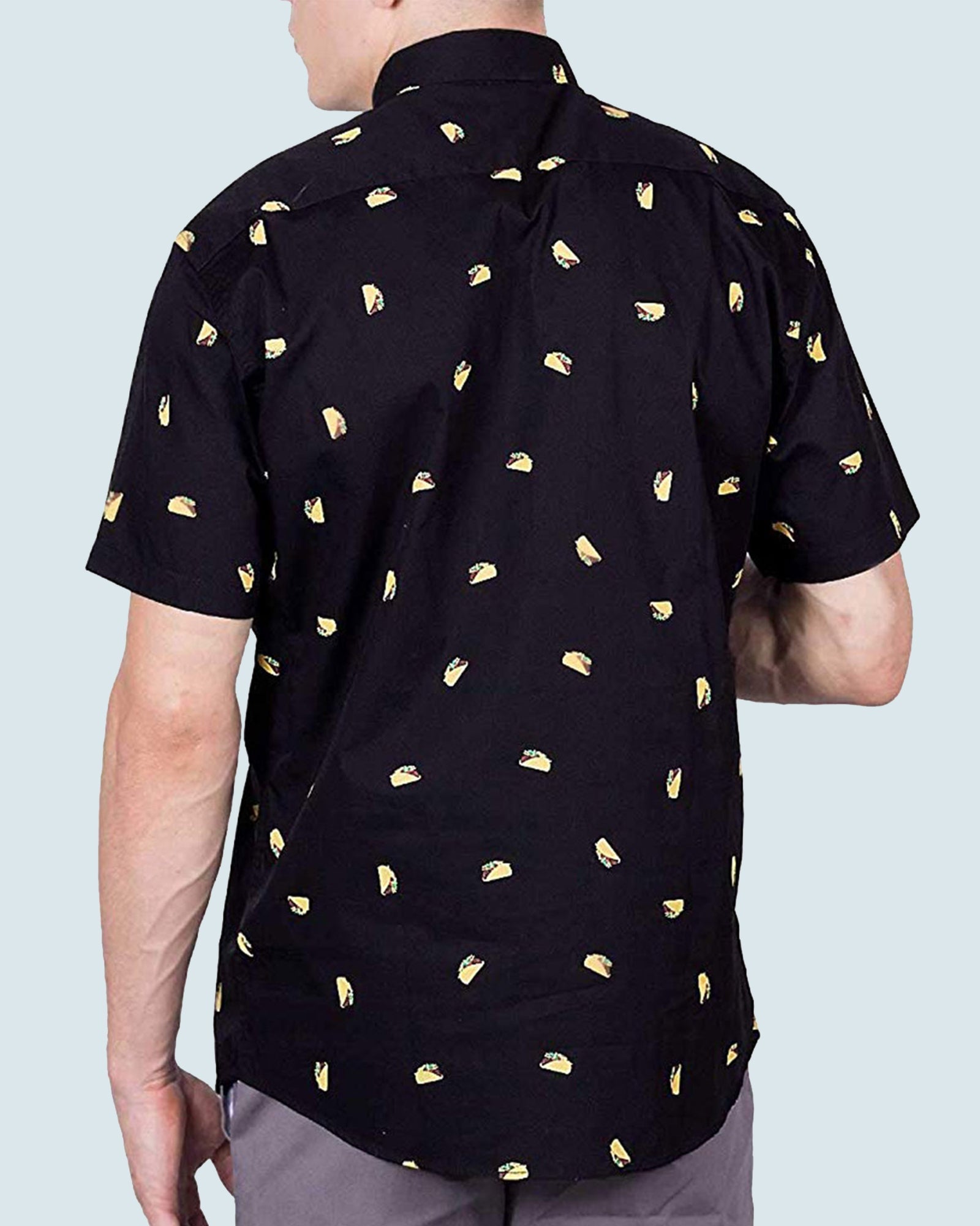 The Visive Men's Black Taco Button Down Shirt is a fun and comfortable choice for casual wear. Made from a premium blend of 55% polyester and 45% cotton, this shirt is lightweight, breathable, and perfect for warm-weather days. The playful taco print on a clean white background adds a unique touch to your outfit, making it ideal for barbecues, gatherings, or relaxed weekends.