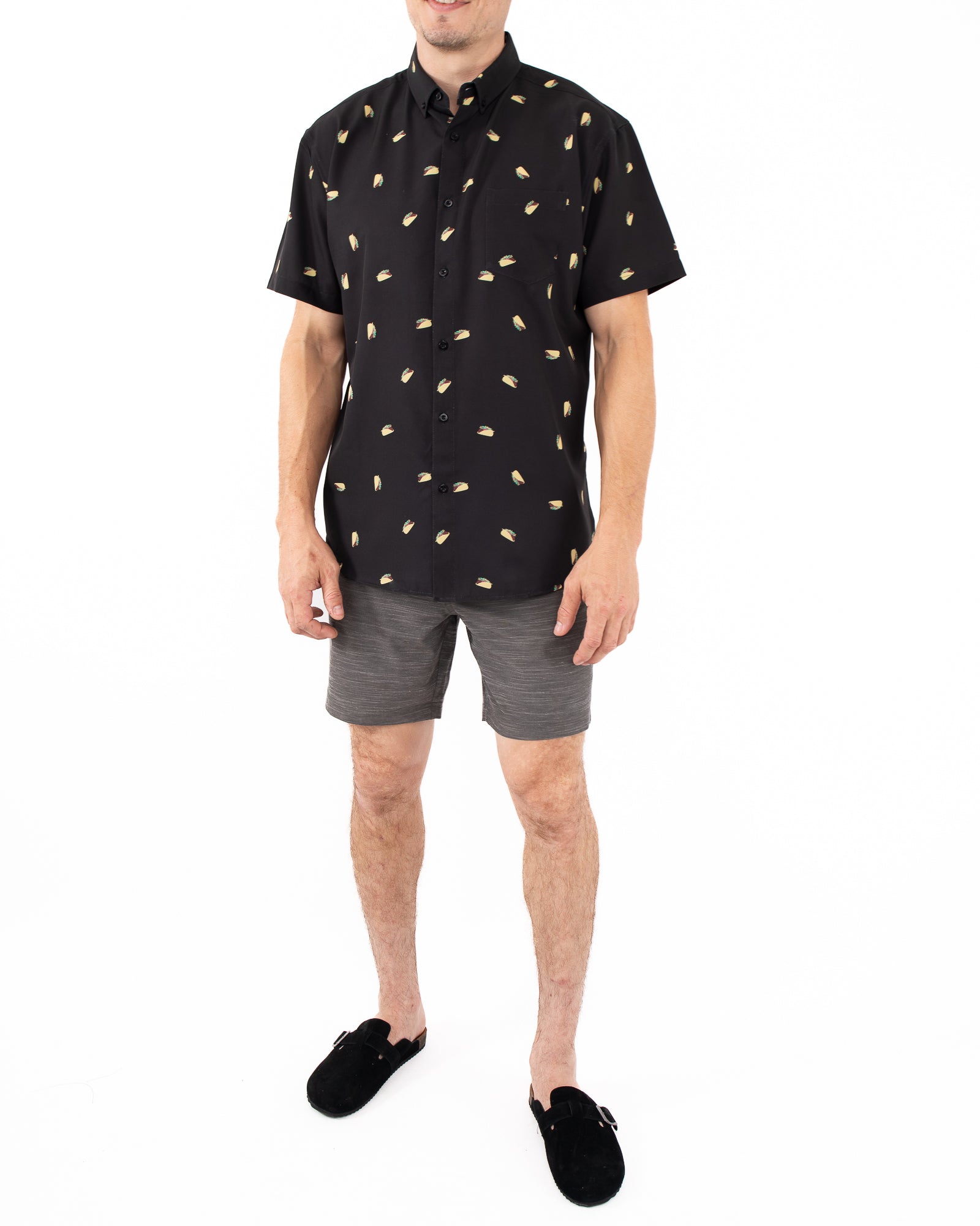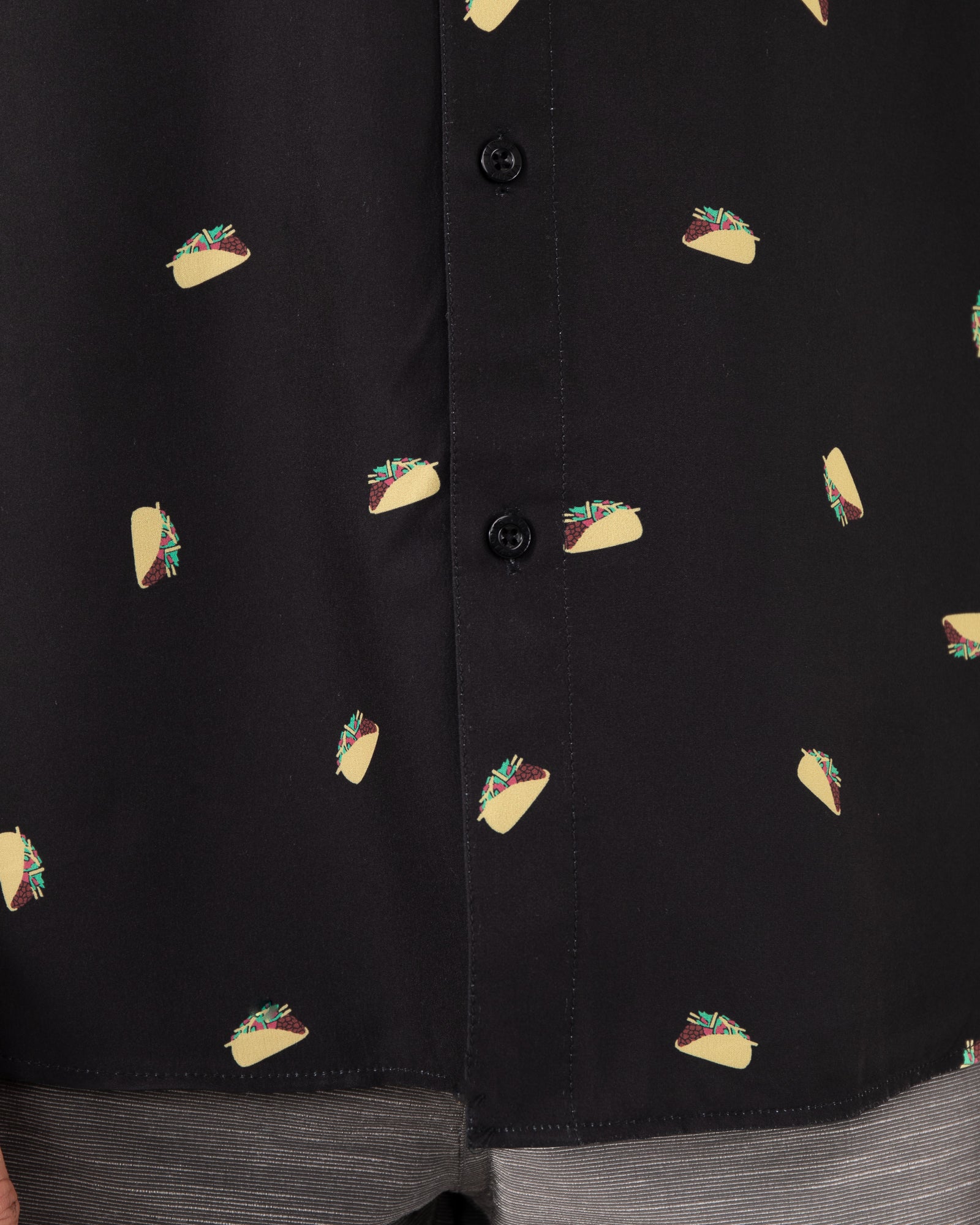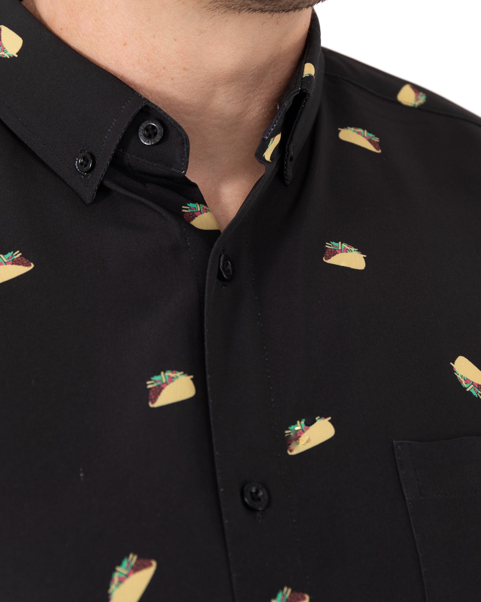 Mens Button Down Shirts - Black Taco ( Stretch )
