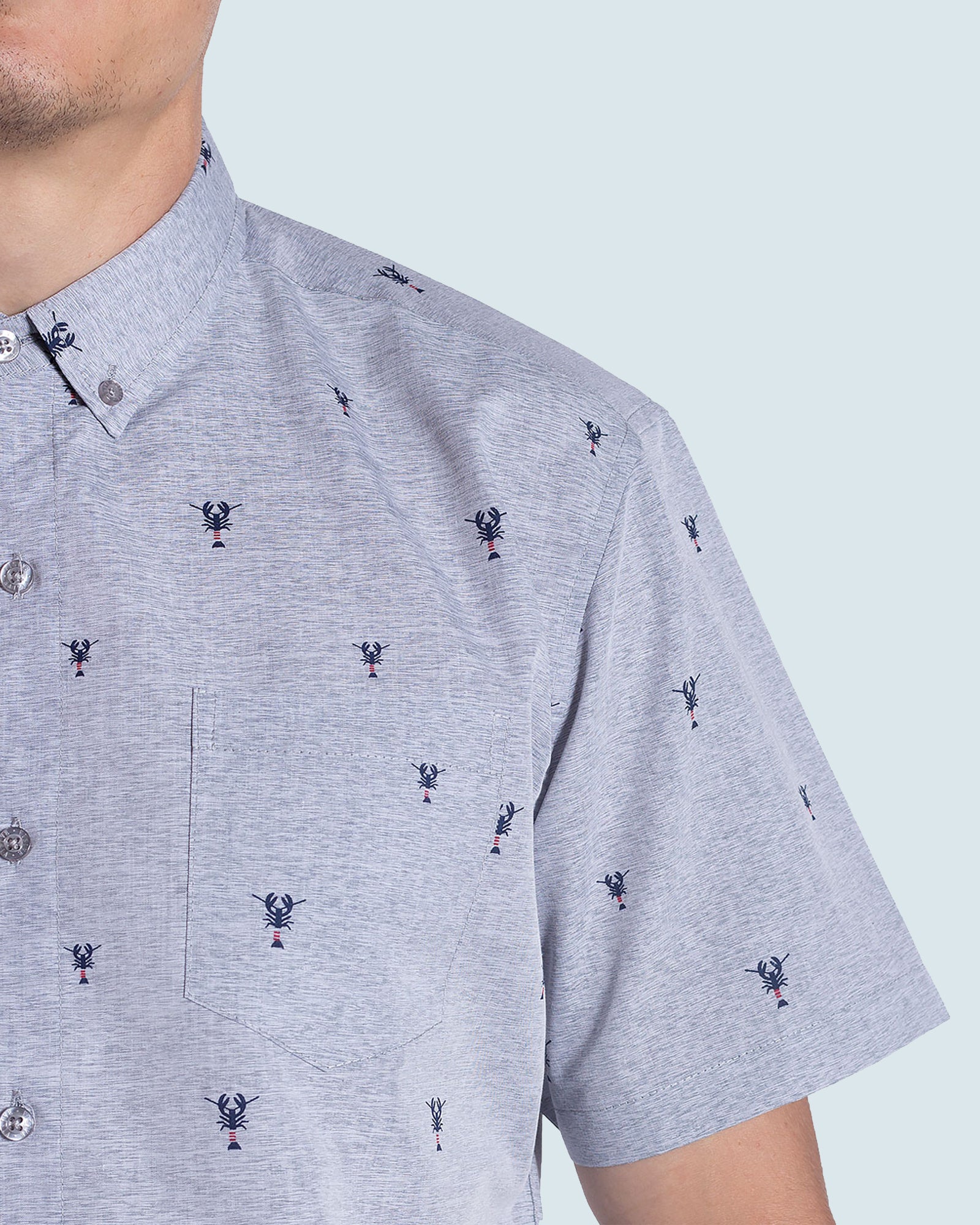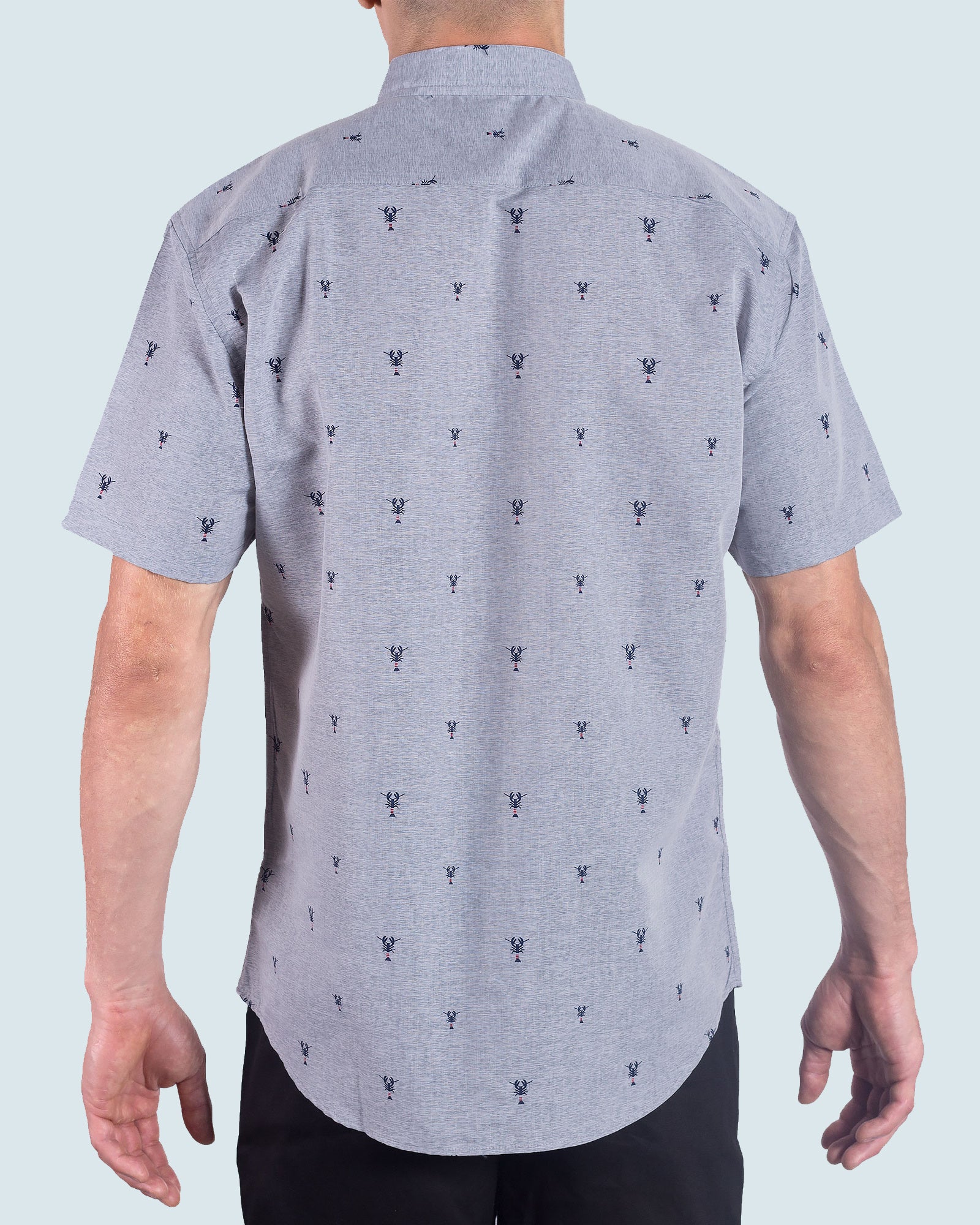 Add a splash of fun to your wardrobe with this Grey Lobster button down shirt. Made from a blend of 55% polyester and 45% cotton, it’s lightweight, breathable, and perfect for staying comfortable all day long. The playful lobster print on a navy background gives it a unique look that’s great for casual outings or summer get-togethers. With its short sleeves and relaxed fit, this shirt is a stylish choice for warm weather.