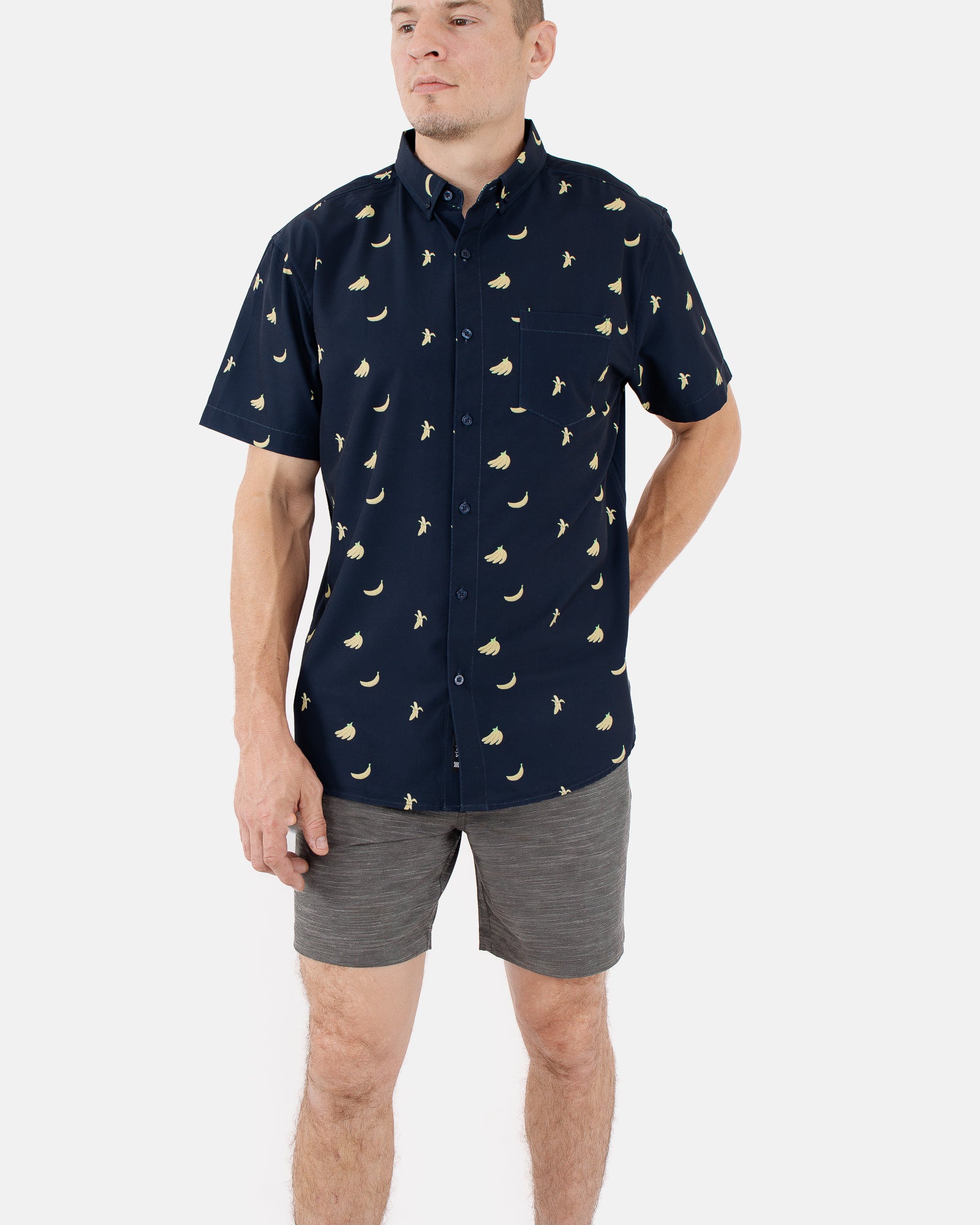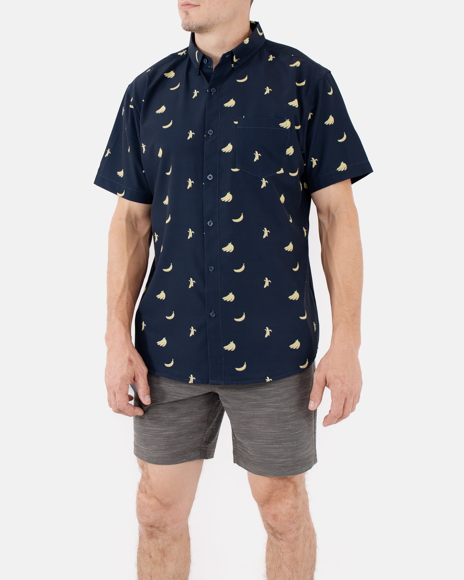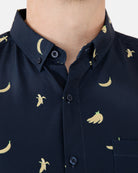Mens Button Down Shirts - Navy Banana (Stretch)