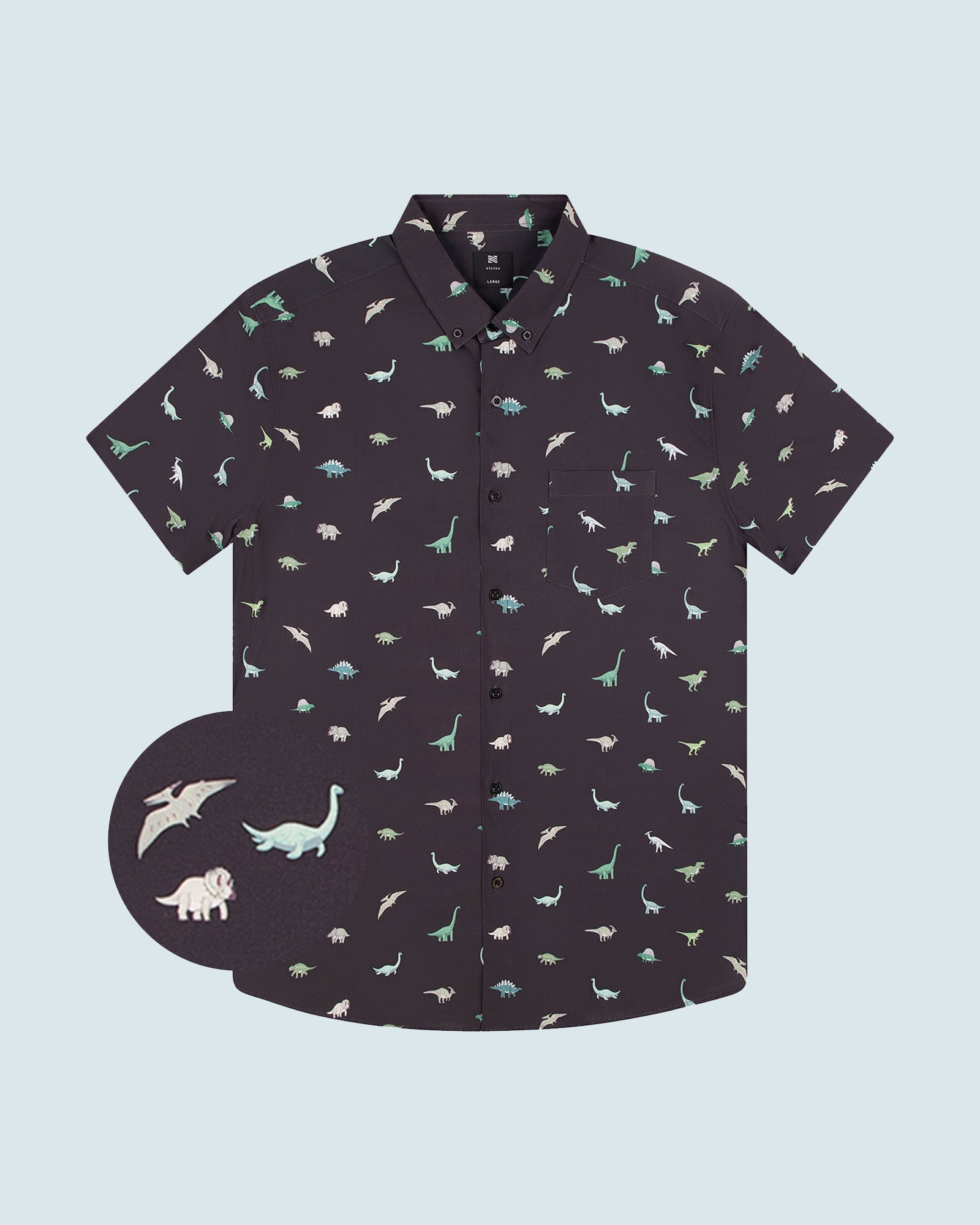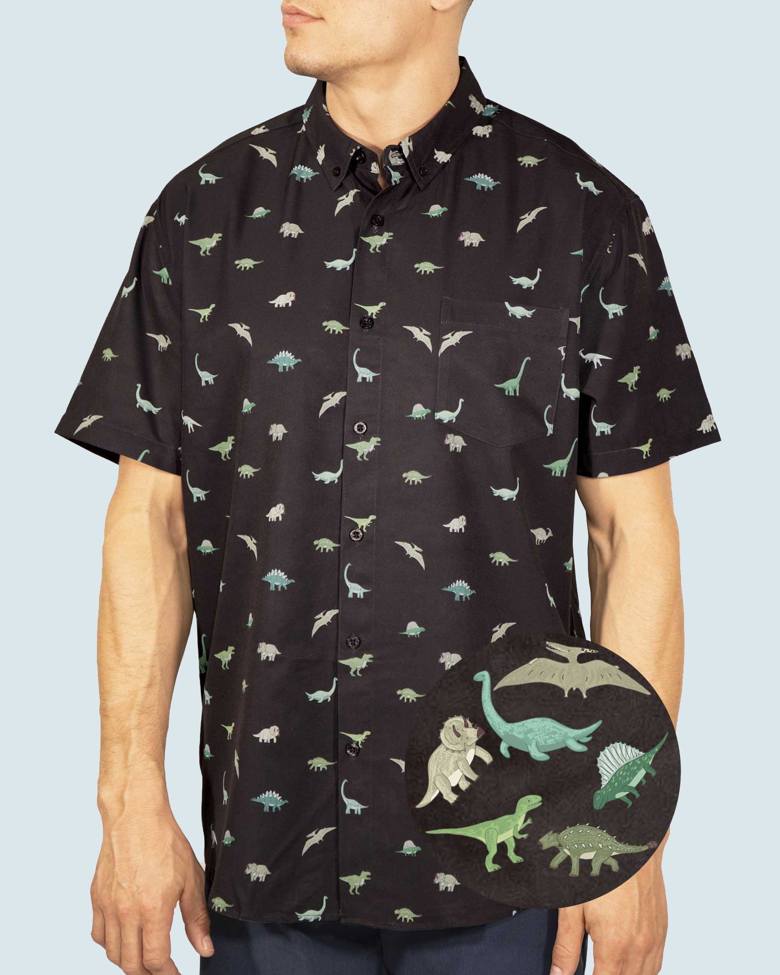 Mens Button Down Shirts - New Black Dino (Stretch)