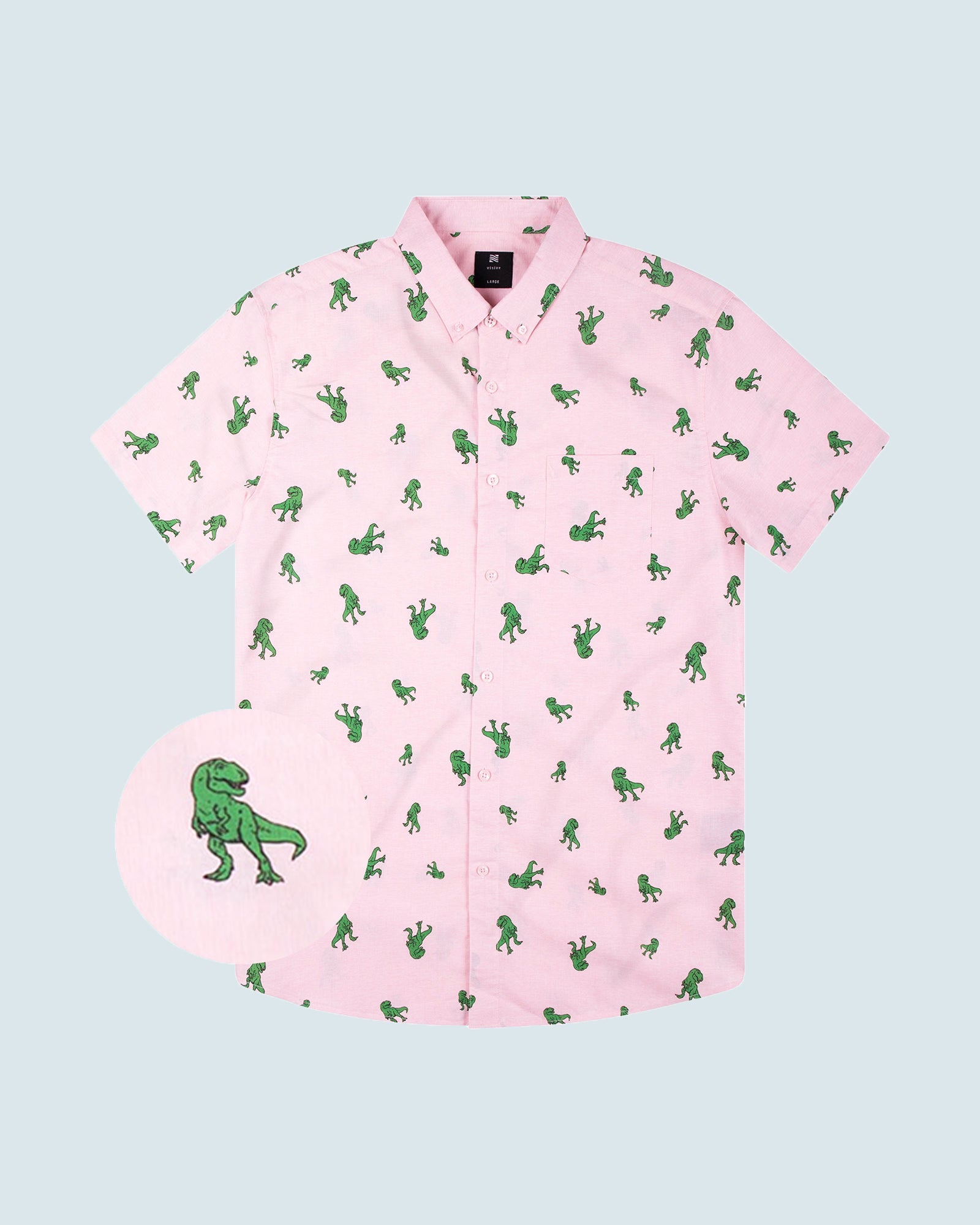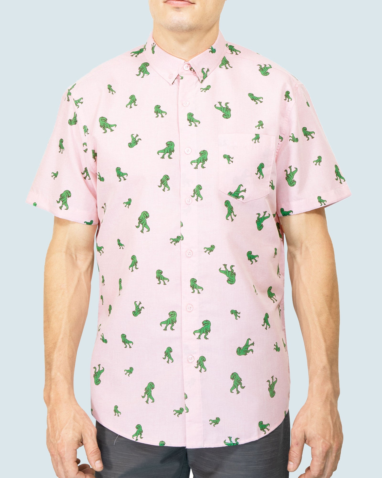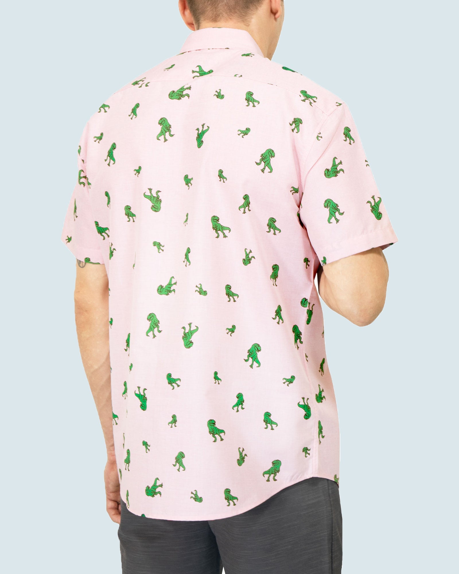 Caring for this men's button down shirt short sleeve is simple and convenient. Machine wash it in cold water to keep the colors bright, and avoid tumble drying to maintain its quality and stretch. Whether you’re a fan of dinosaurs or just love a unique and fun style, the Pink Trex shirt is a must-have addition to your summer wardrobe.