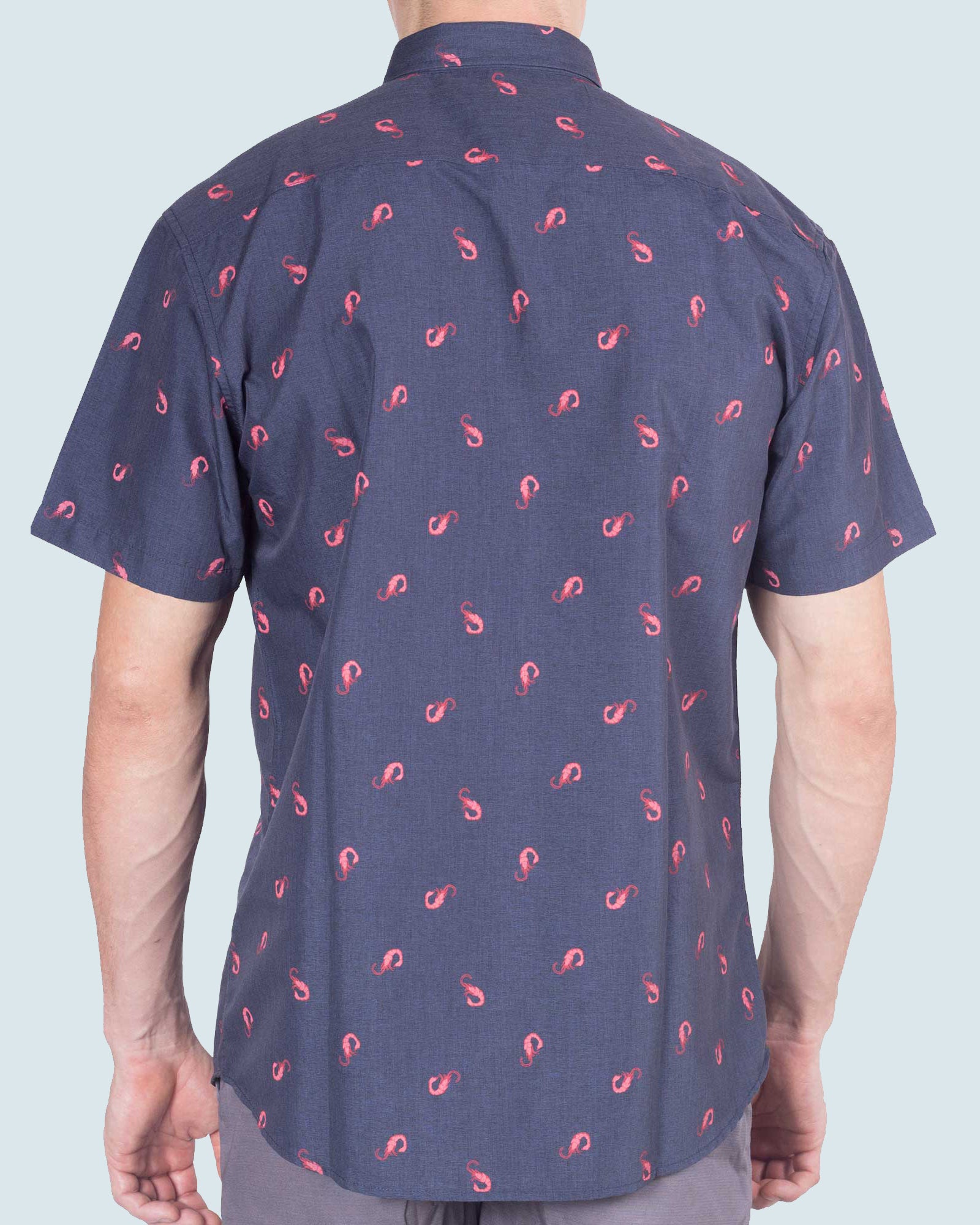 Caring for this men's button down shirt short sleeve is easy and hassle-free. Simply machine wash it in cold water, and avoid tumble drying to maintain its vibrant print and quality. Designed for men who want to blend comfort with style, the Shrimp shirt is a must-have addition to your summer wardrobe, offering a unique and fresh look for any casual occasion.