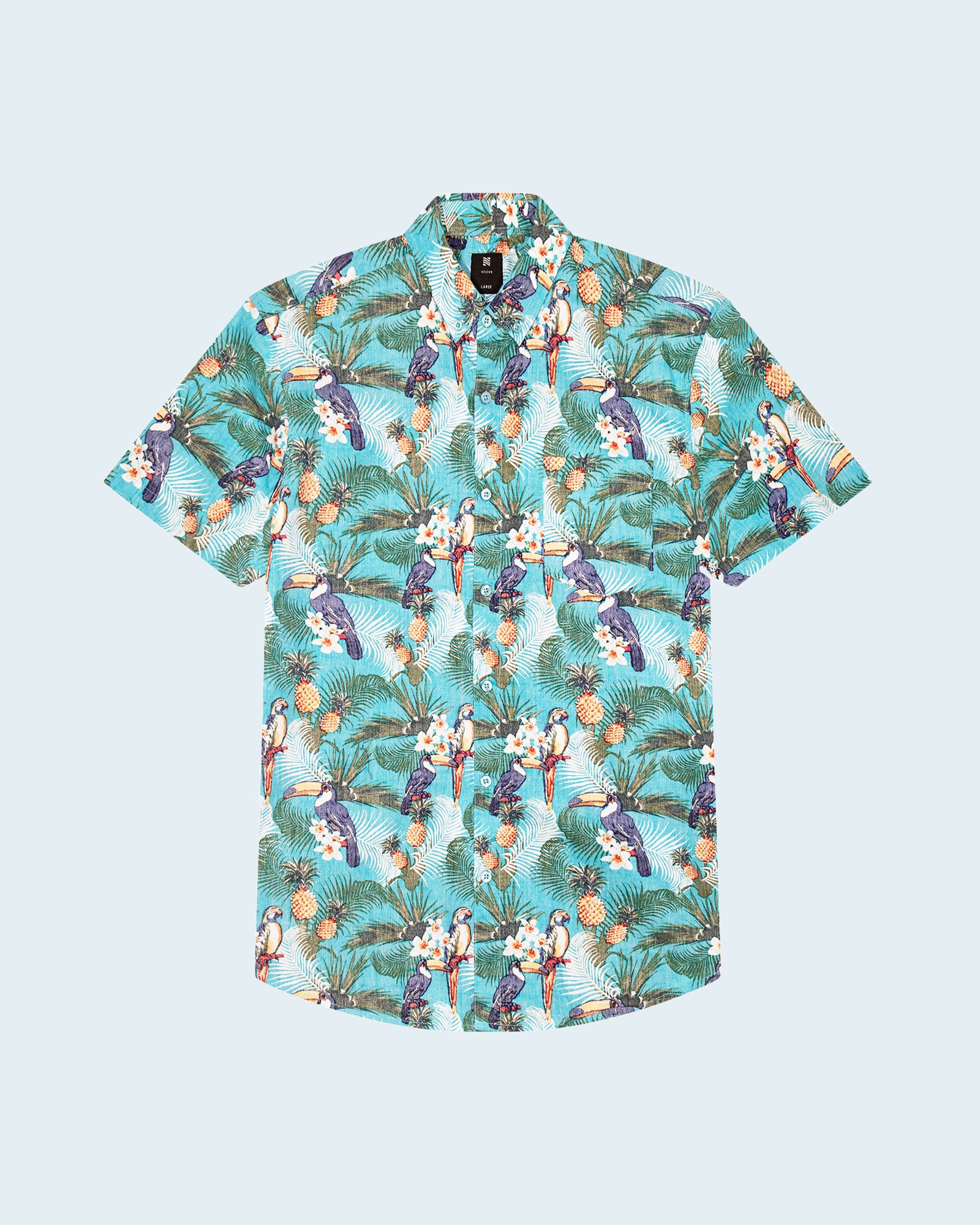 Mens Button Down Shirts - Reverse Parrot Pineapples