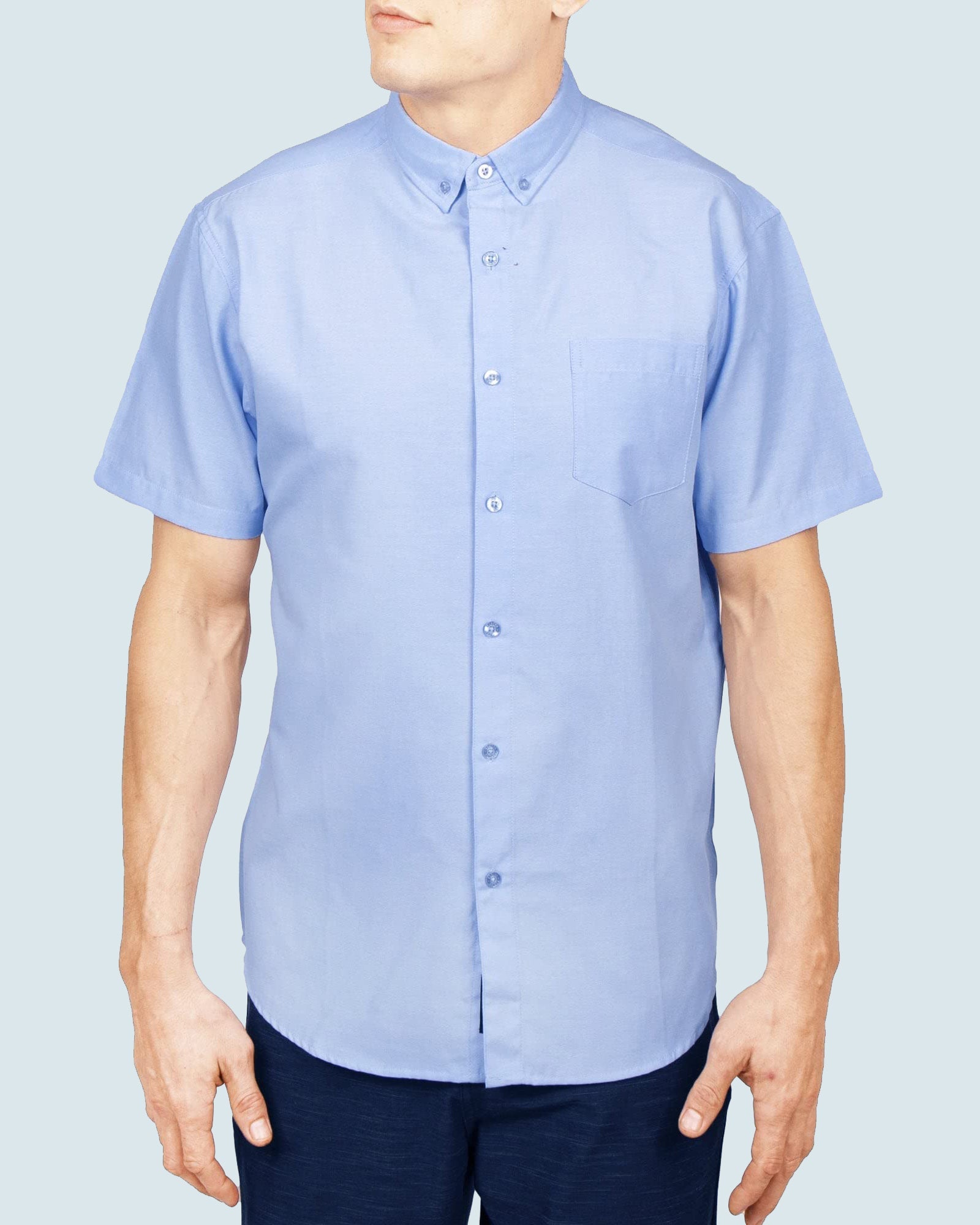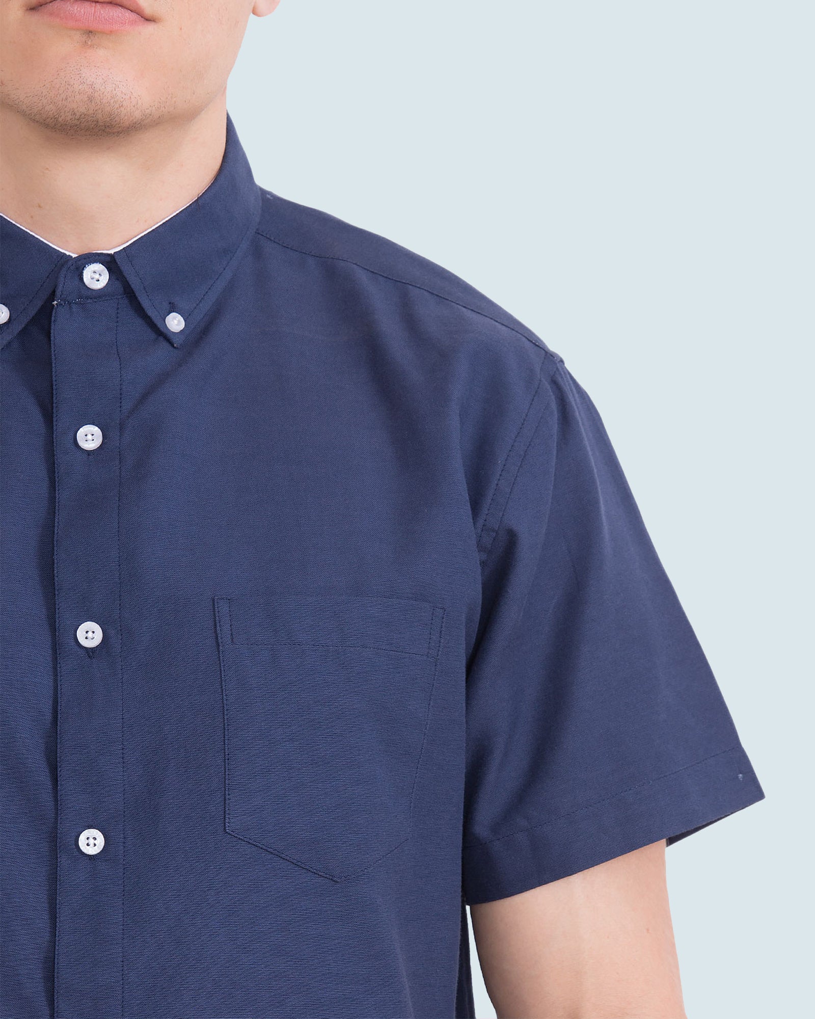 A navy oxford shirt is a must-have for any wardrobe. Made from a 55% polyester and 45% cotton blend, this shirt offers a balance of breathability and durability. The short sleeve oxford shirt keeps you comfortable all day, whether you're at work or out with friends. Designed with a button-down collar and chest pocket, it has a polished yet relaxed feel. The fabric holds its shape while getting softer over time, making it a reliable go-to for any occasion.